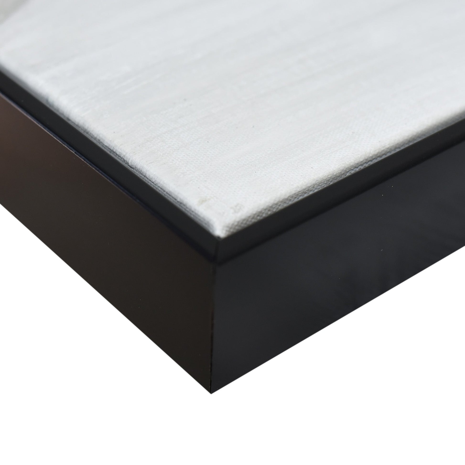 Stretched and gallery wrapped around a wooden stretcher and finished with a floating frame. There is a gap between the frame and print, which creates the floating effect and literally makes the canvas print stand out even more.