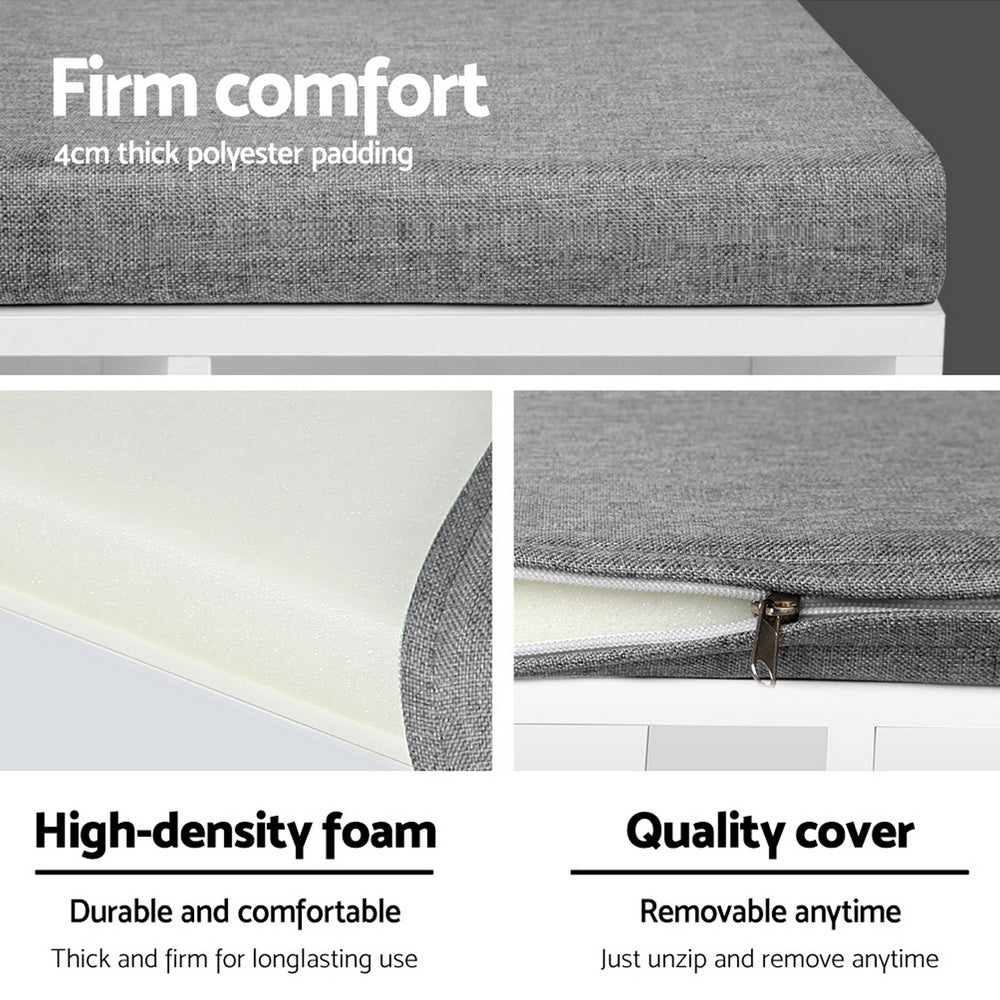 Artiss Fabric Shoe Bench with Storage Cubes - White