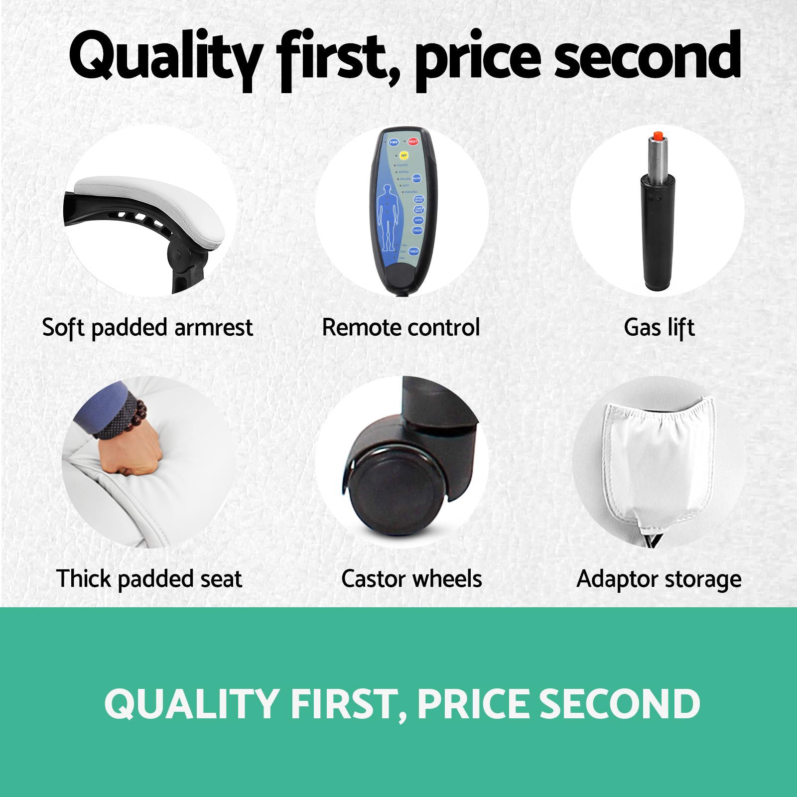 Artiss Massage Office Chair 8 Point PU Leather Office Chair - White