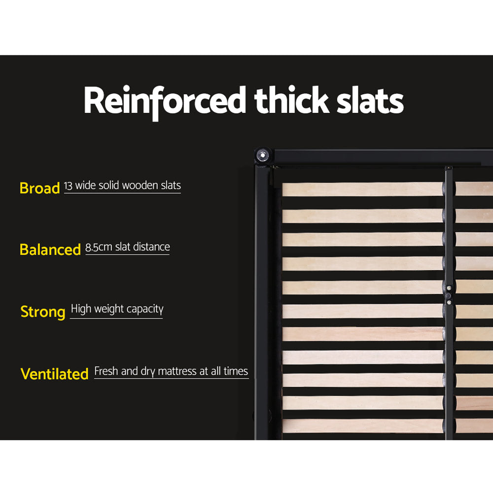 It is time to get the sleep you deserve with this Artiss Nino Bed Frame. Beautifully draped in PU leather, this is the luxurious bed frame you all deserve to rest in every night. The smooth headboard brings the prestige, whilst the strong steel frame with reinforced steel bars and a wooden arched slat base can put your mind at ease as you know you are sleeping on quality. One of the best qualities is the fact the bed frame has a gas lift which creates an instant storage area with ample space for you to hide away your items. This bed frame has the smarts as well as being great to look at!