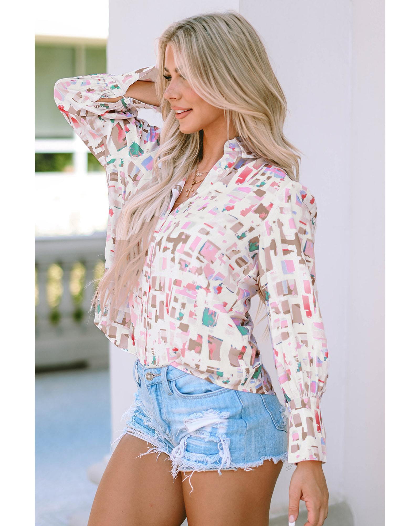 Azura Exchange Abstract Print Lantern Sleeve Casual Shirt - 2XL