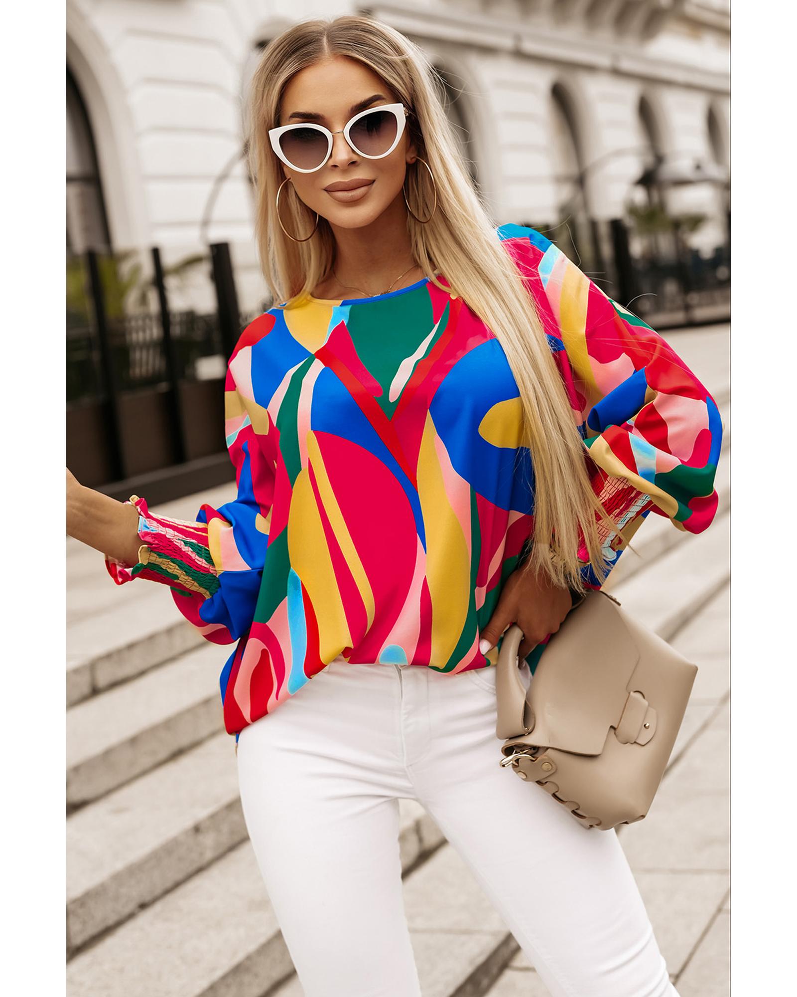 Azura Exchange Abstract Print Smocked Puff Sleeve Blouse - M