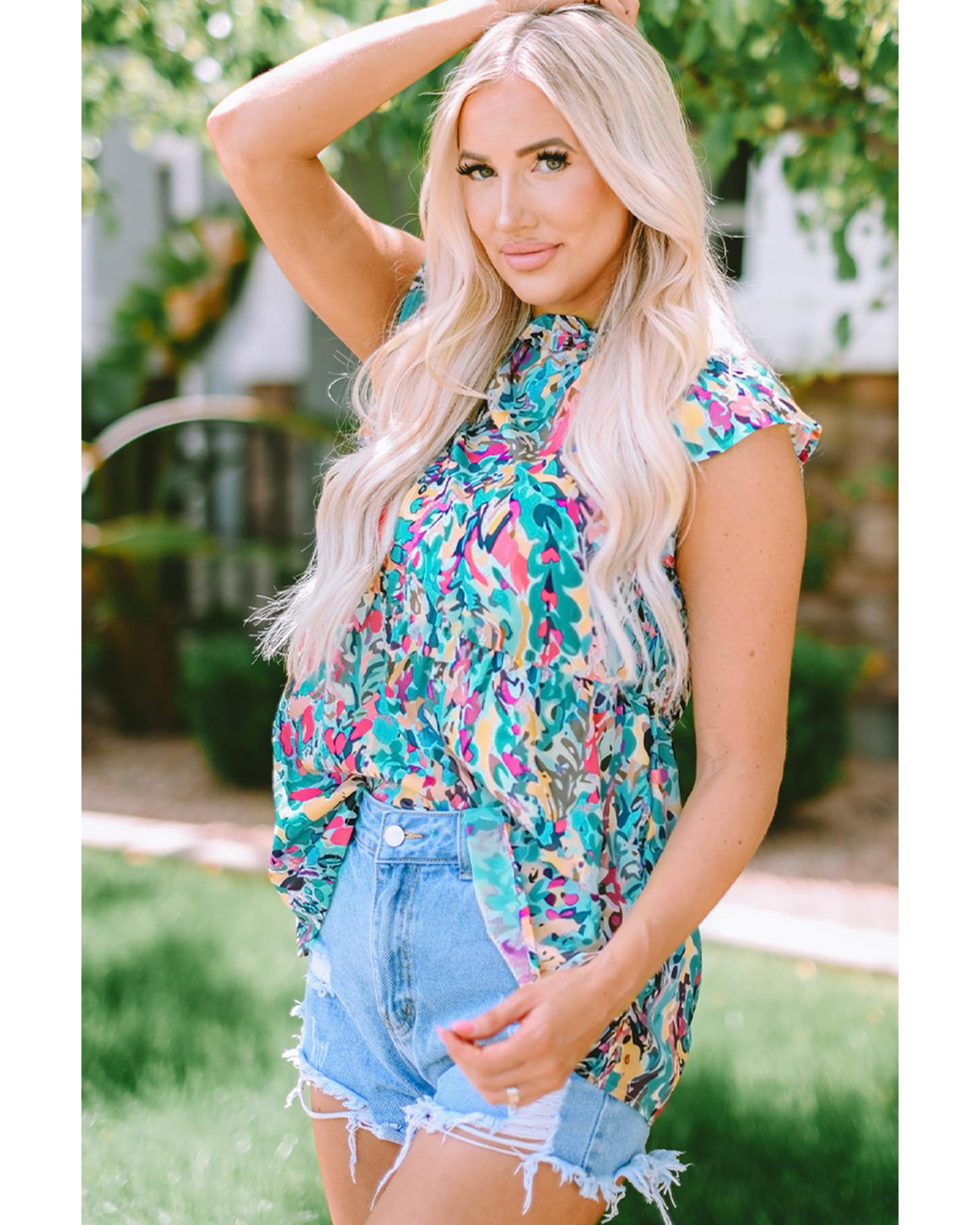 Azura Exchange Abstract Print Tie V Neck Peplum Blouse - S