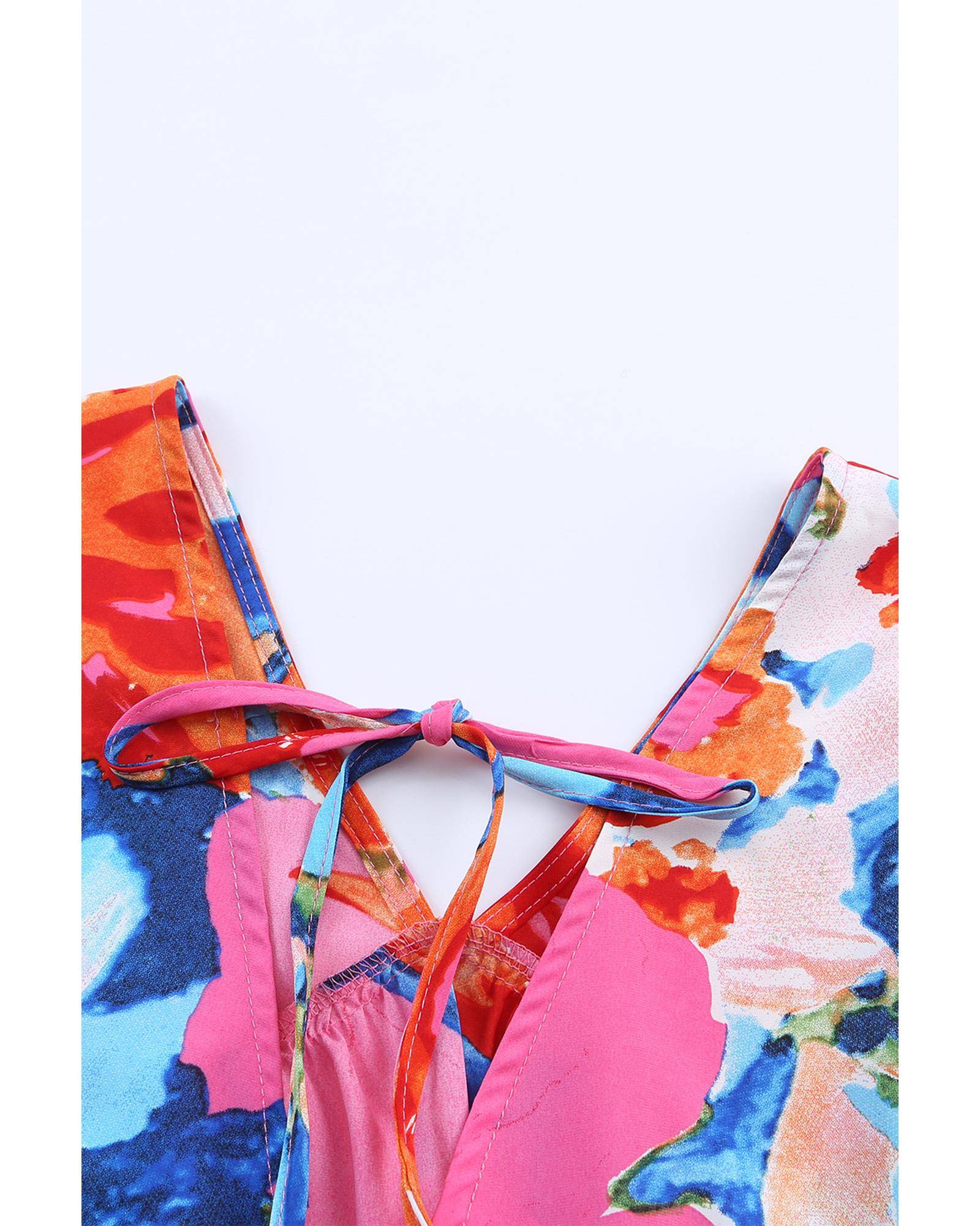 Azura Exchange Abstract Print V Neck Flutter Sleeve Blouse - XL