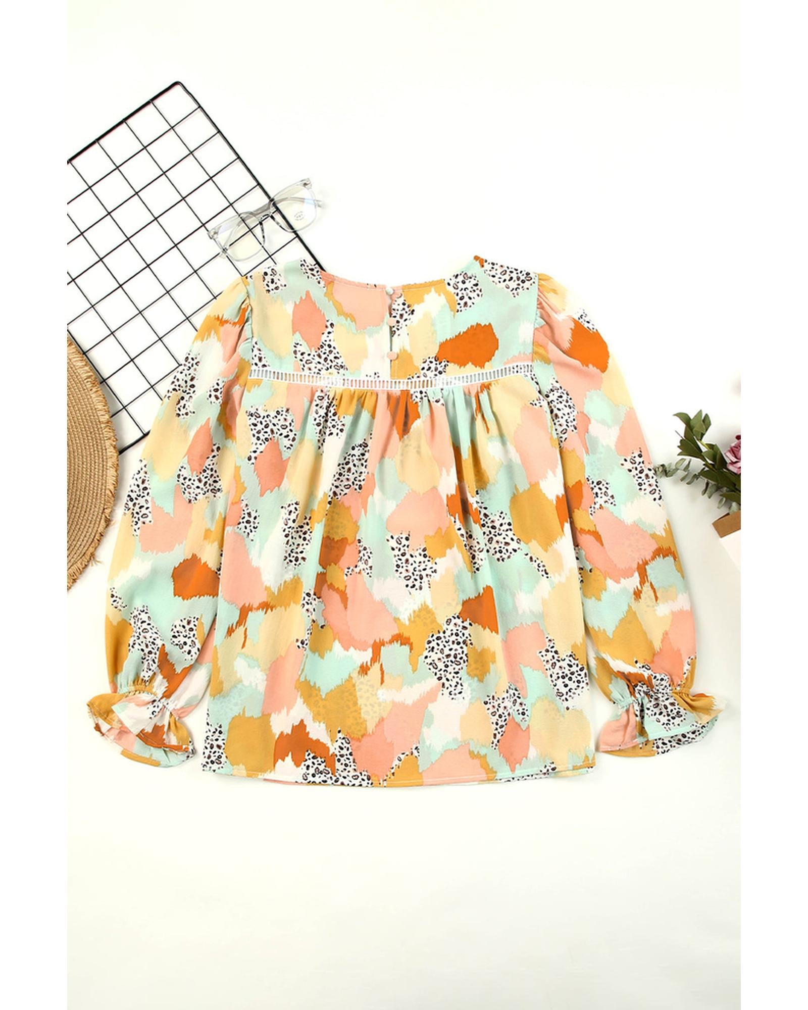 Azura Exchange Abstract Printed Long Sleeve Blouse - M