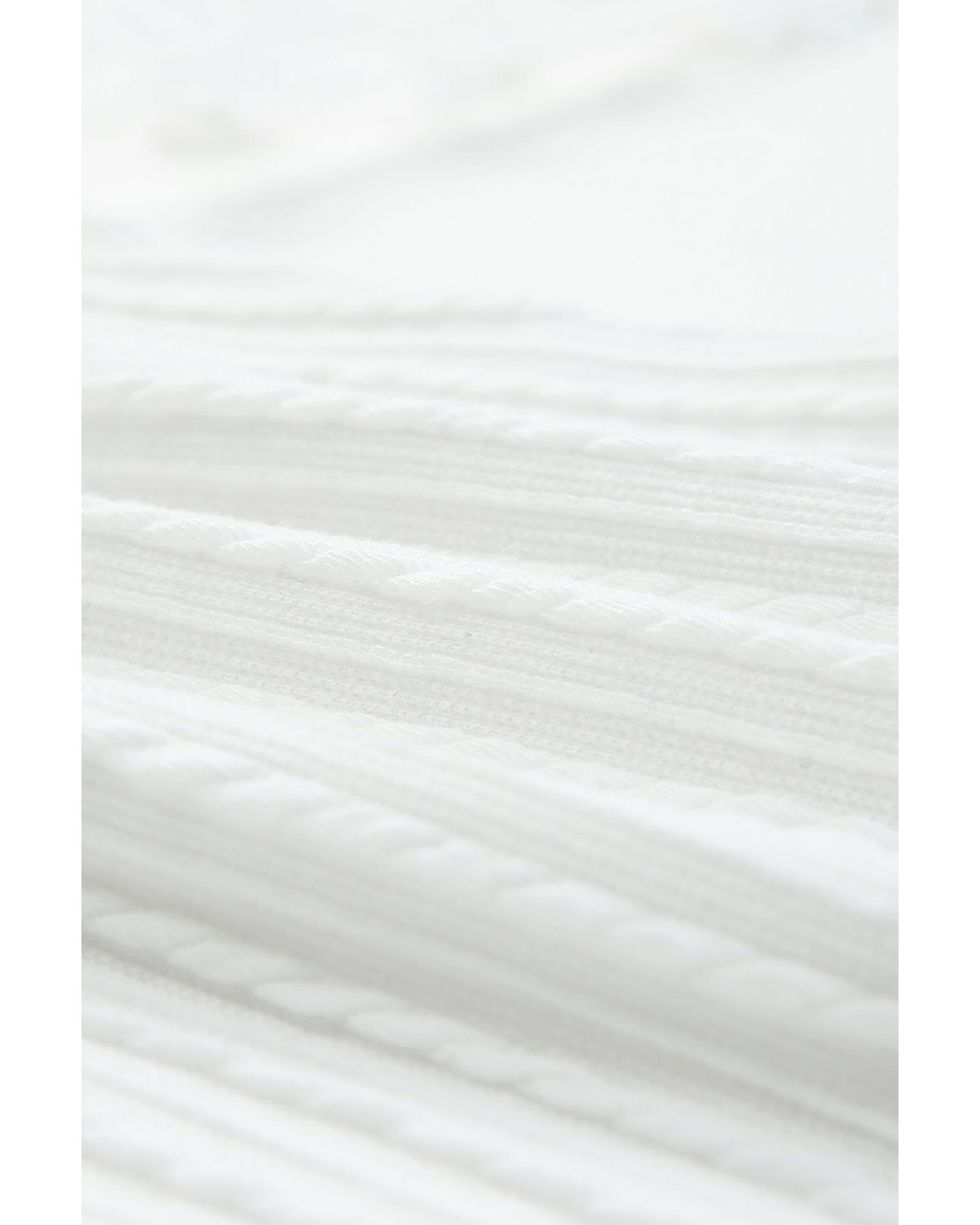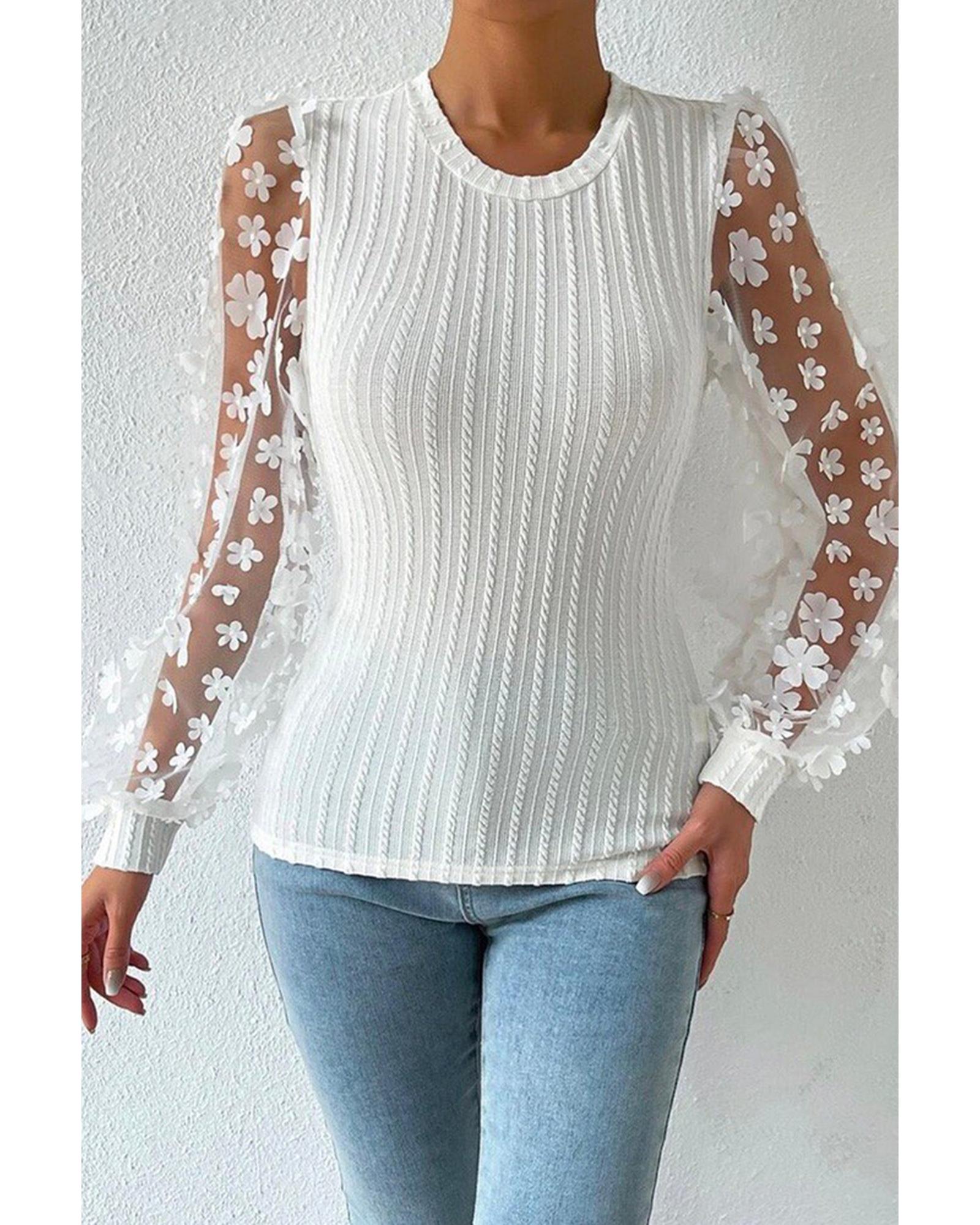 - Stylish and elegant Floral Applique Mesh Sleeves Textured Knit Blouse