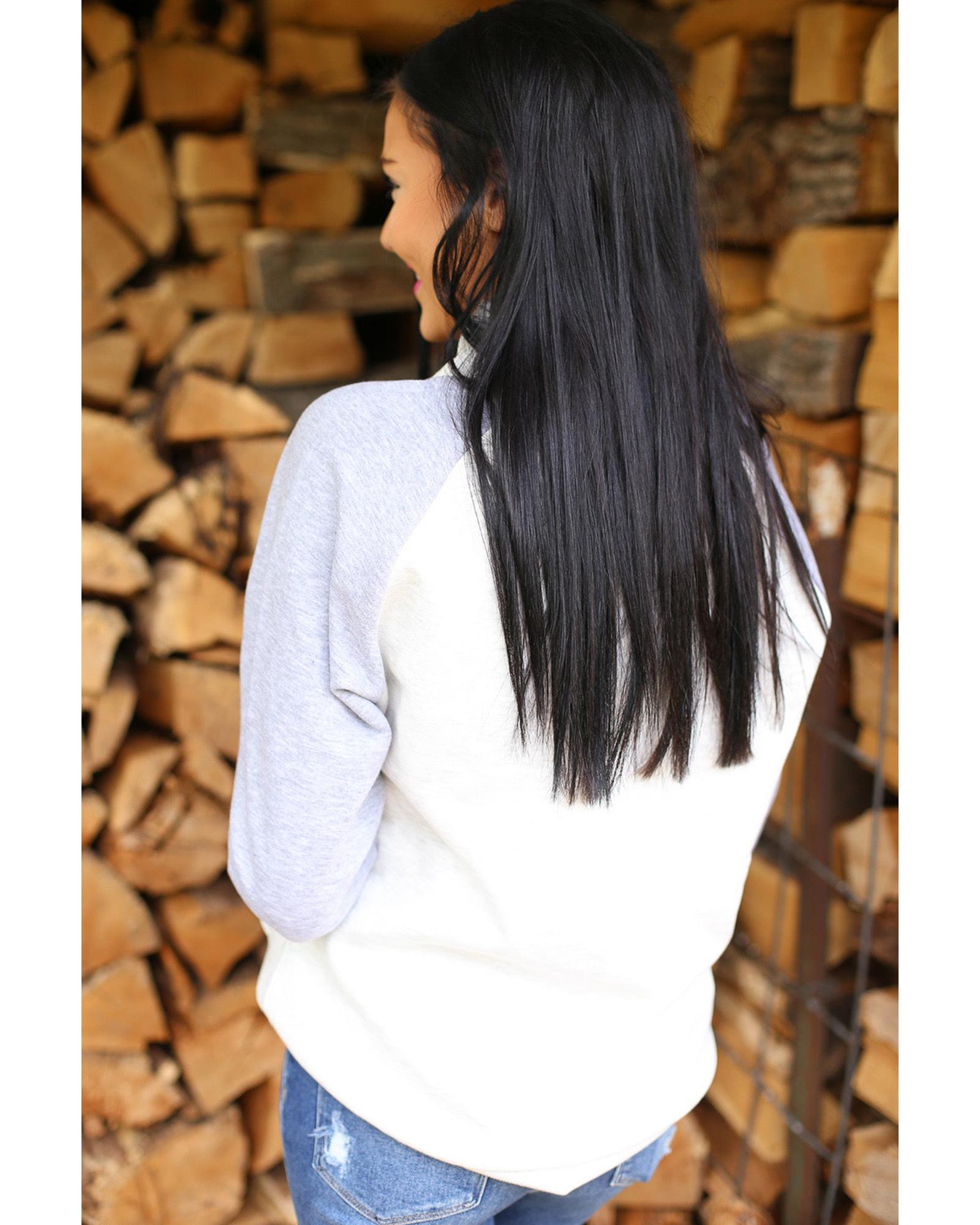 - Stylish and trendy Asymmetrical Snap Buttons Graphic Raglan Sleeve Sweatshirt