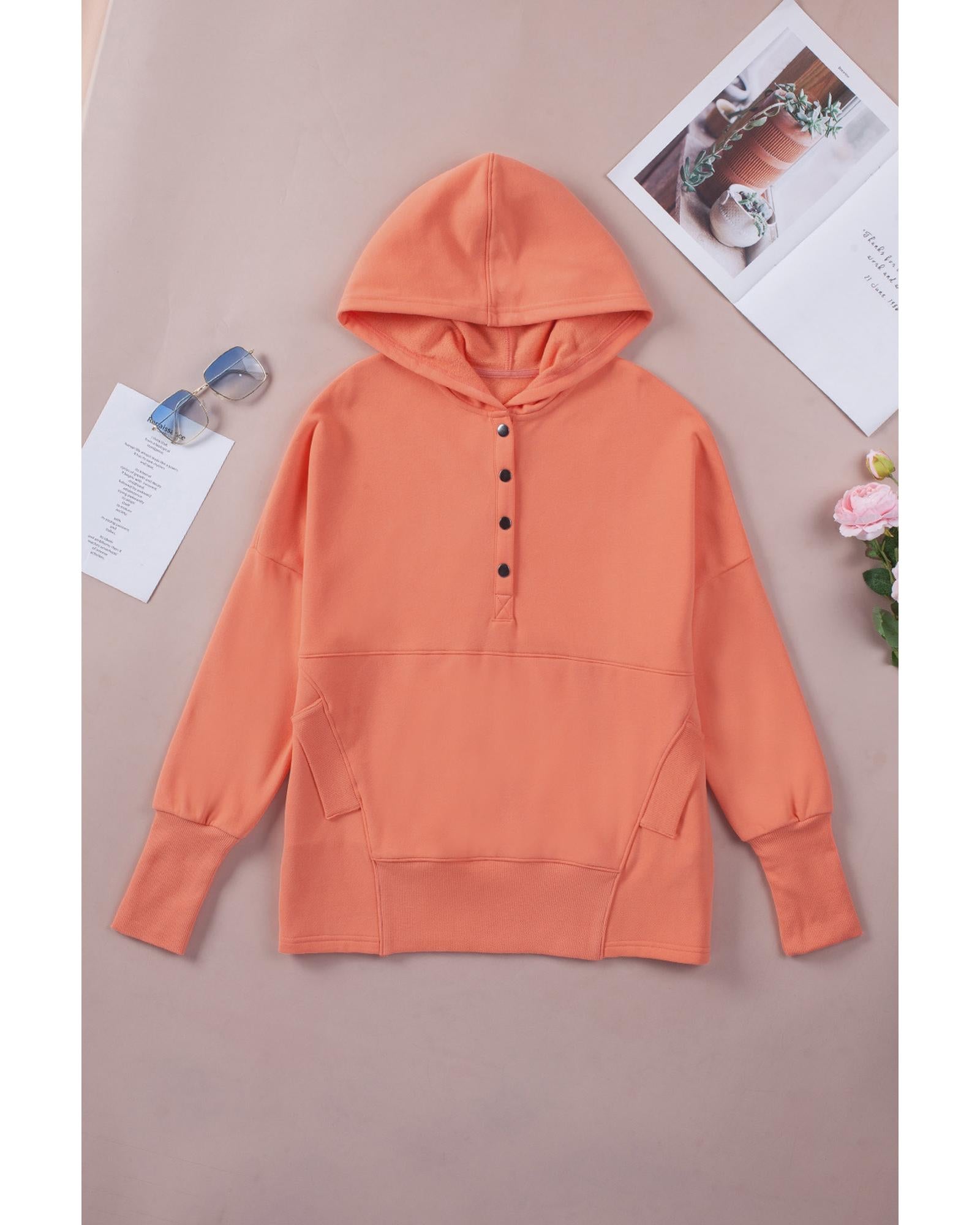 - Stylish and functional Batwing Sleeve Pocketed Henley Hoodie