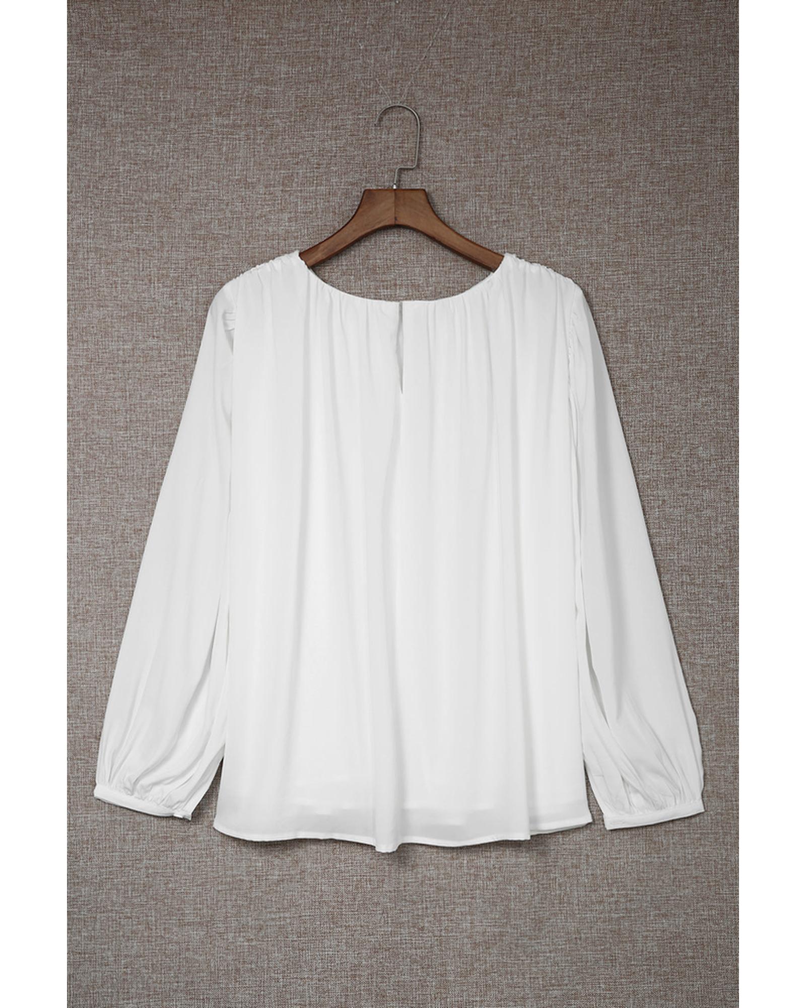 - Stylish and versatile Crew Neck Billowy Sleeve Blouse