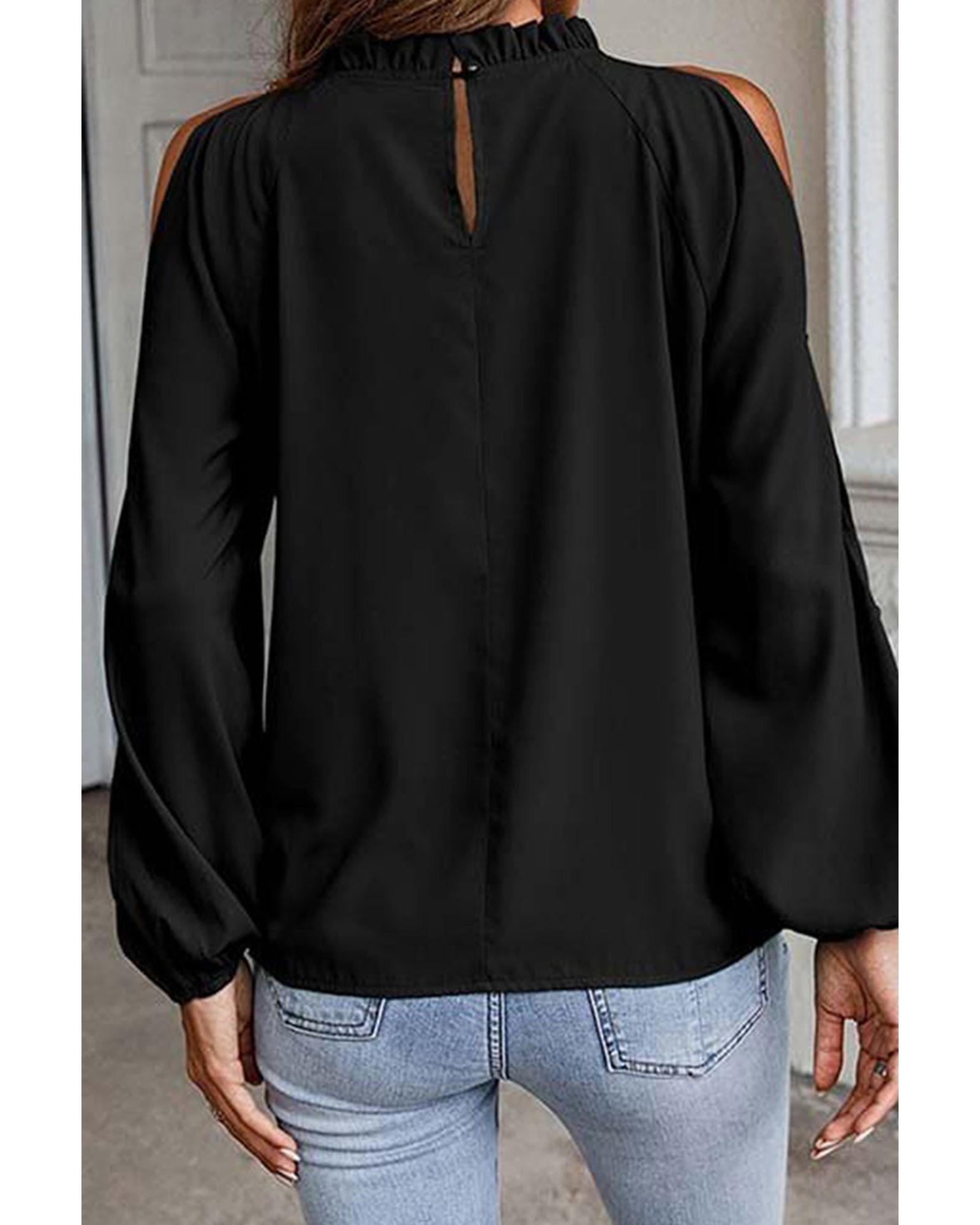 - Cold shoulder style with bishop sleeves