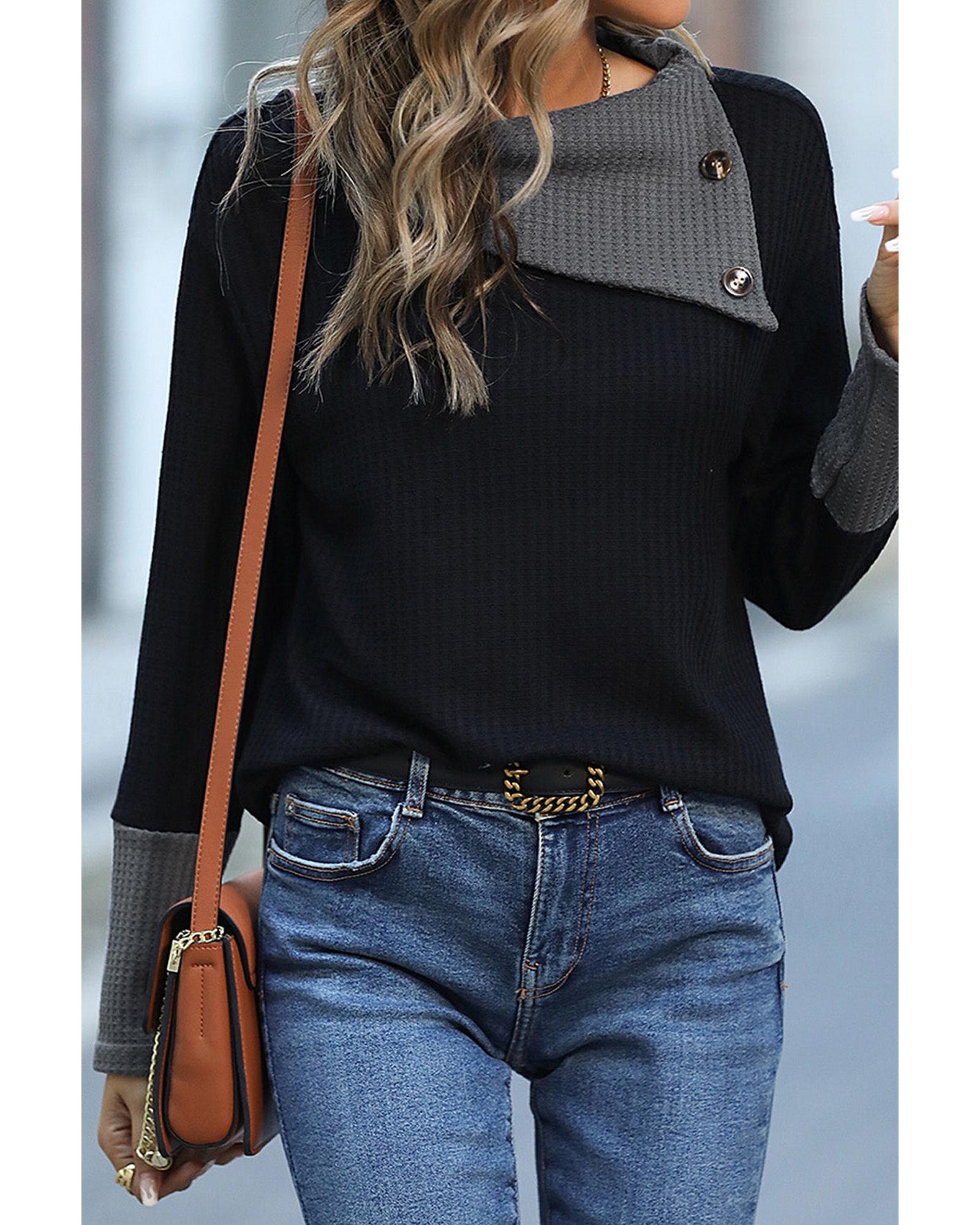Azura Exchange Black Colorblock Asymmetrical Neck Top - M