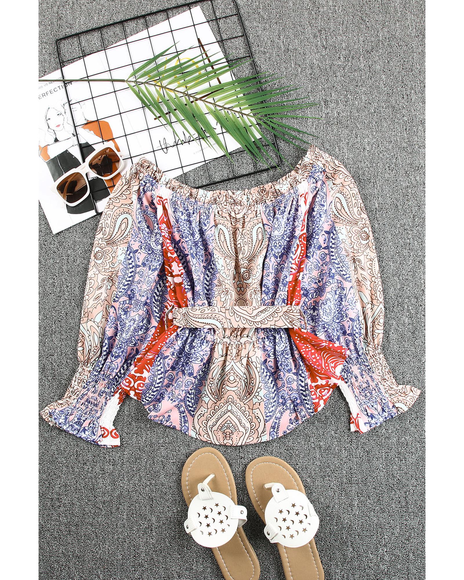 - Vibrant and stylish Multicolor Bohemian Floral Print Off Shoulder Blouse