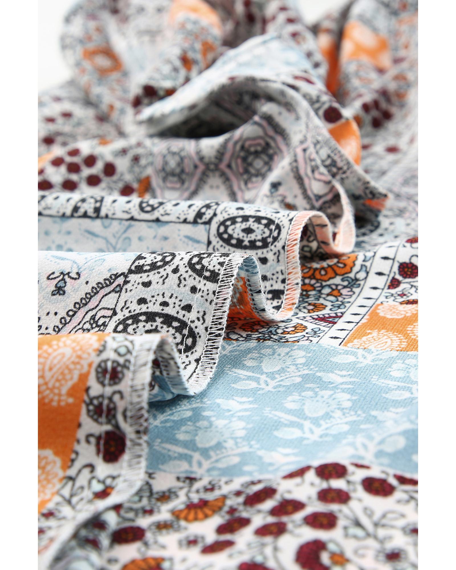 - Multicolor Boho Mixed Patterns Flutter Sleeves Top