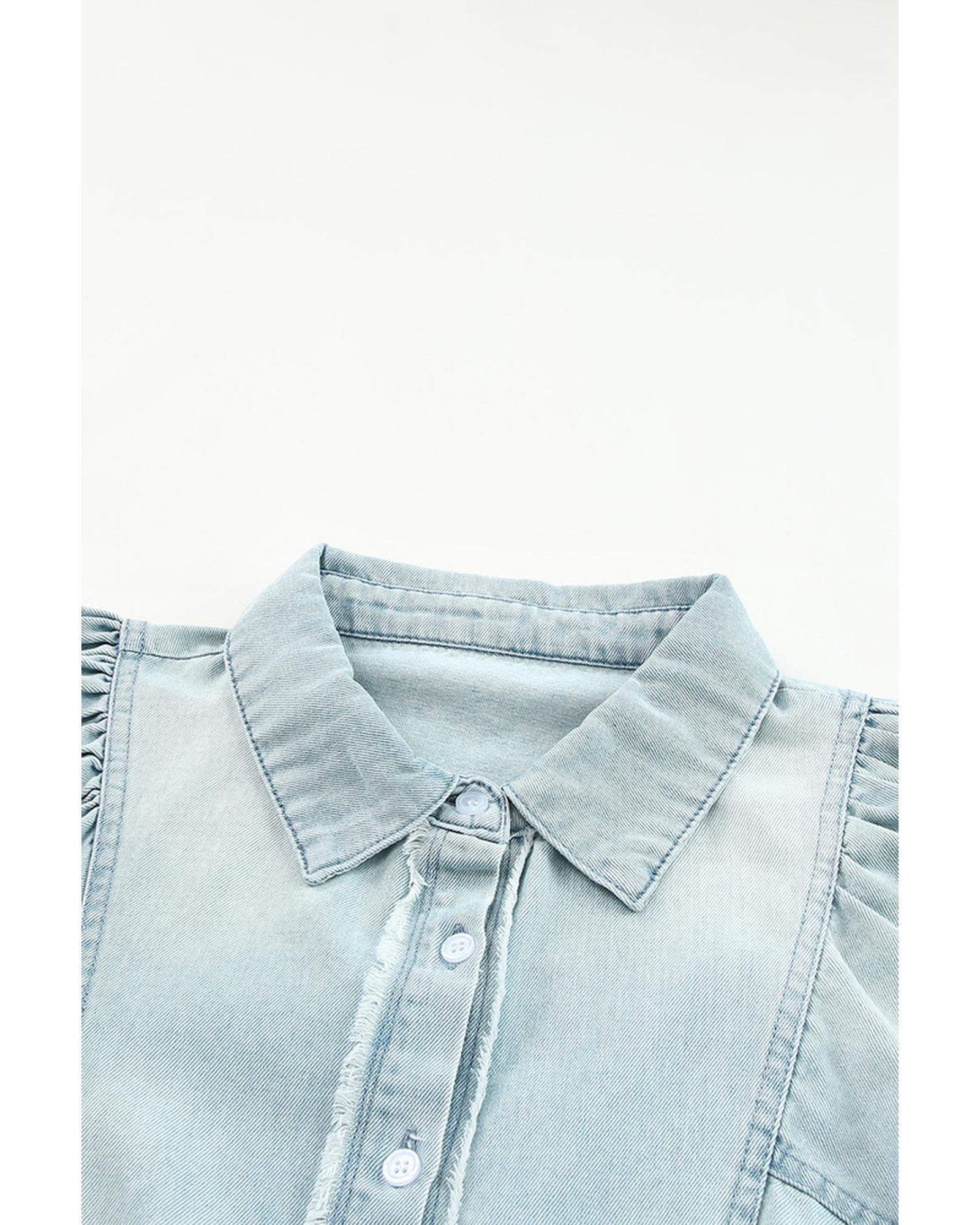 - Stylish Distressed Bubble Sleeve Denim Shirt