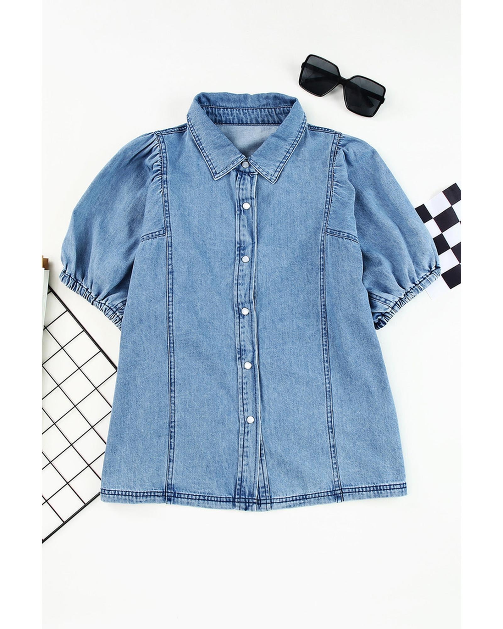 Azura Exchange Bubble Sleeve Denim Shirt - M