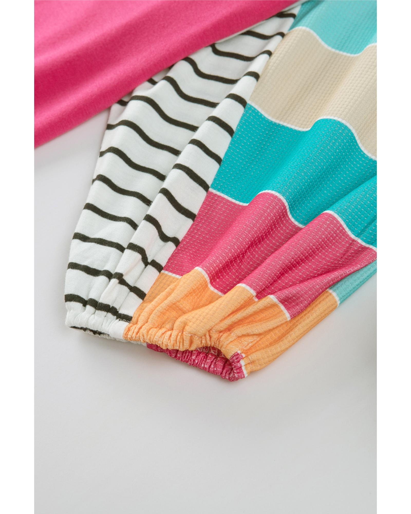 Azura Exchange Bubble Sleeve Stripe Color Block Top - S