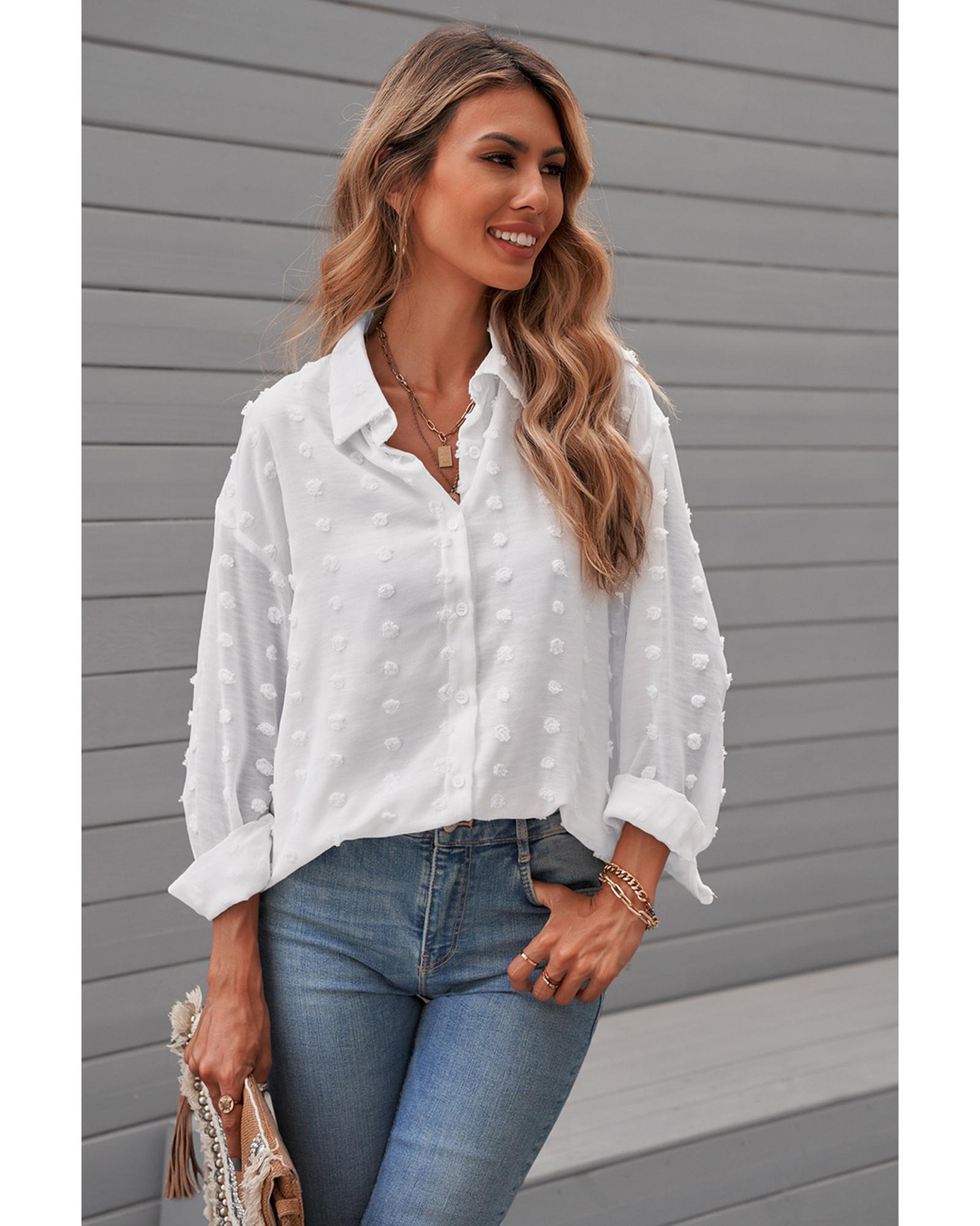 - Stylish Long Sleeve Button Fuzzy Polka Dot Shirt