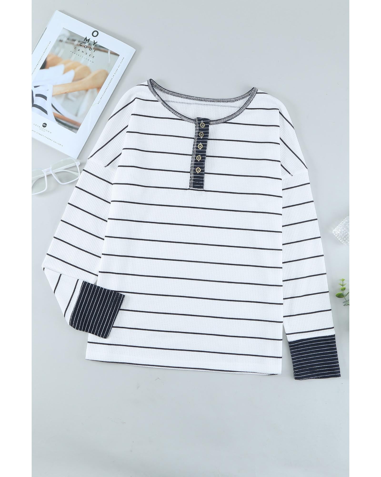 - Striped Color Block Buttoned Waffle Knit Shirt