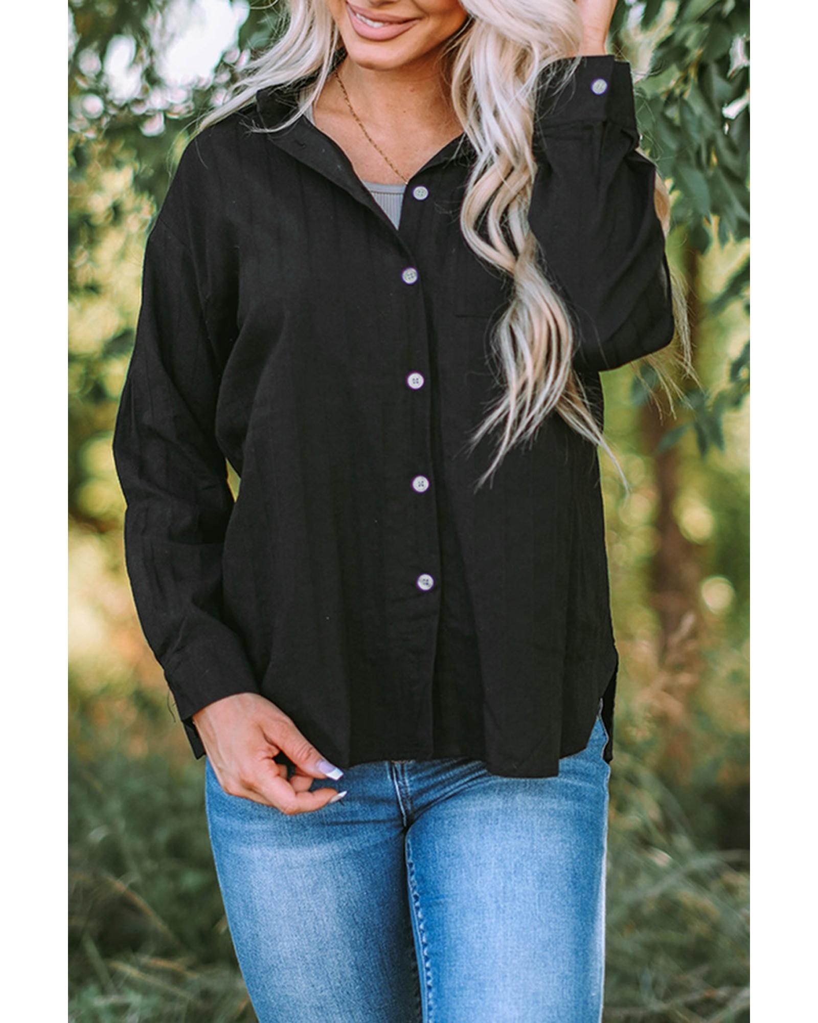 - Versatile and stylish Textured Buttoned Pocket Long Sleeve Shirt