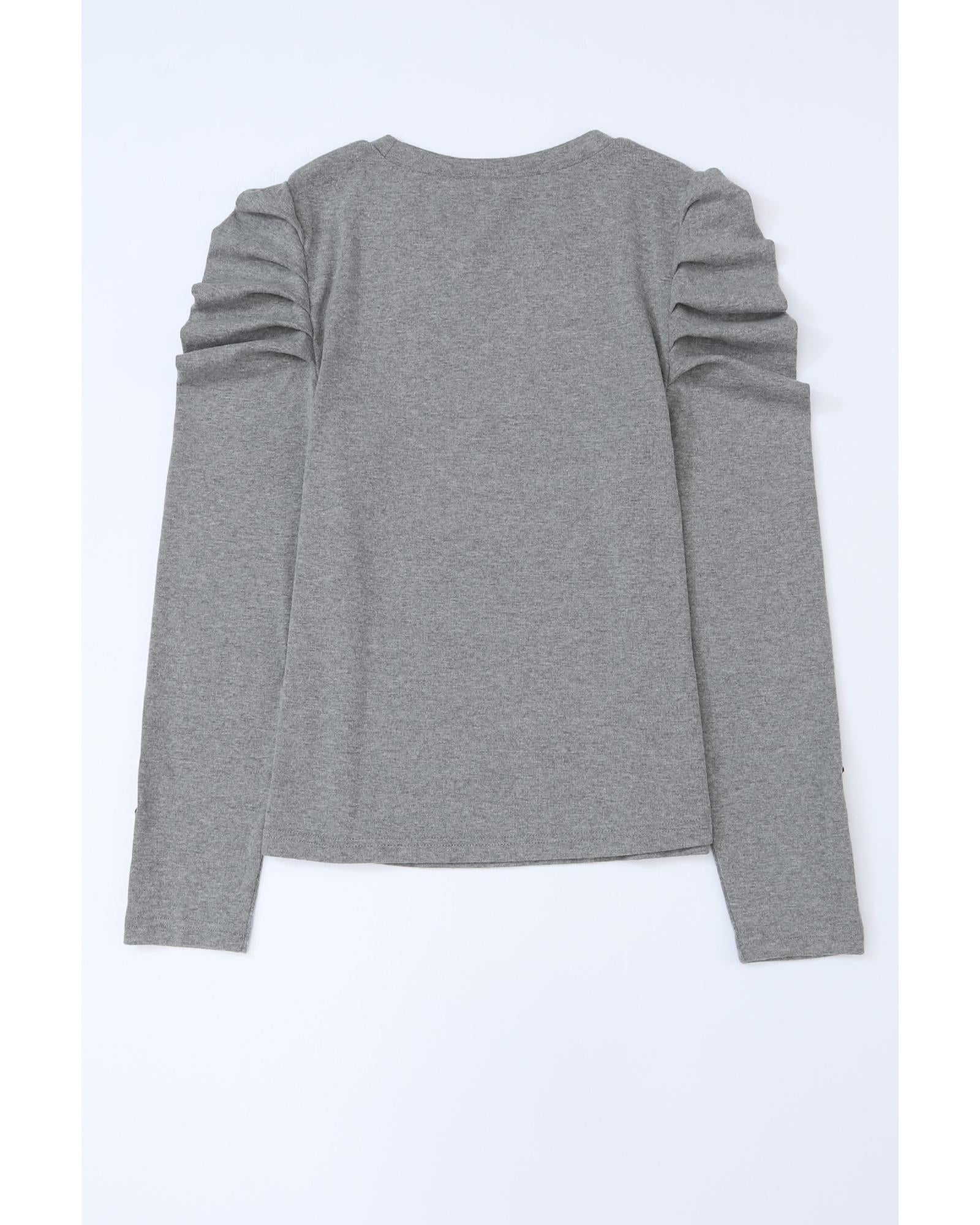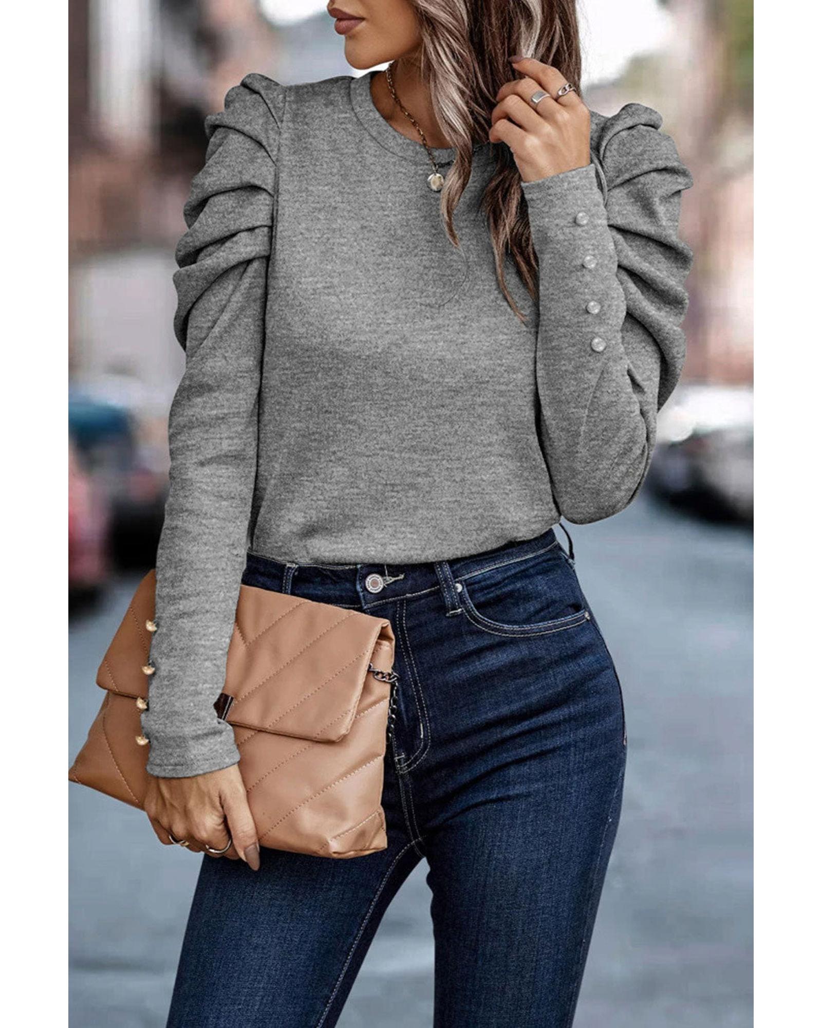 - Gray Buttoned Puff Long Sleeve Sheath Top