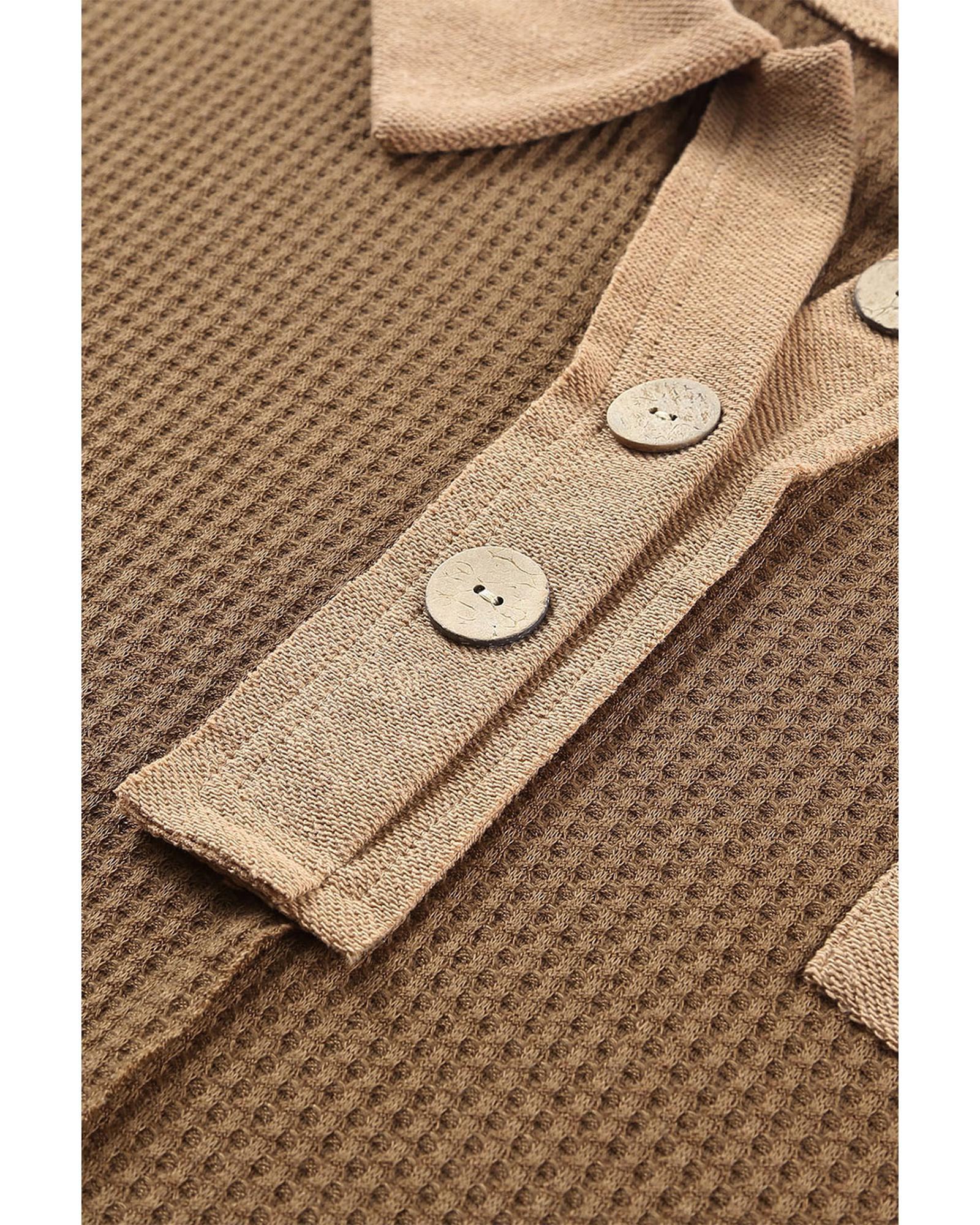 Azura Exchange Buttoned Waffle Knit Long Sleeve Top - L
