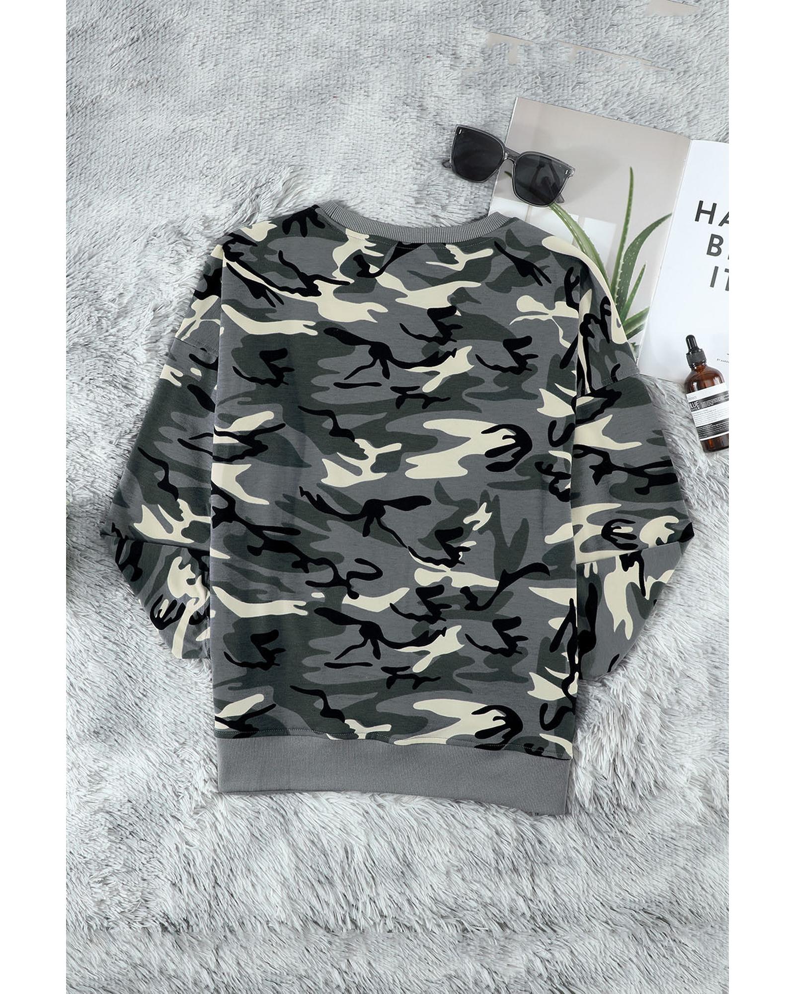- Stylish and trendy Camouflage Pullover Sweatshirt with Slits