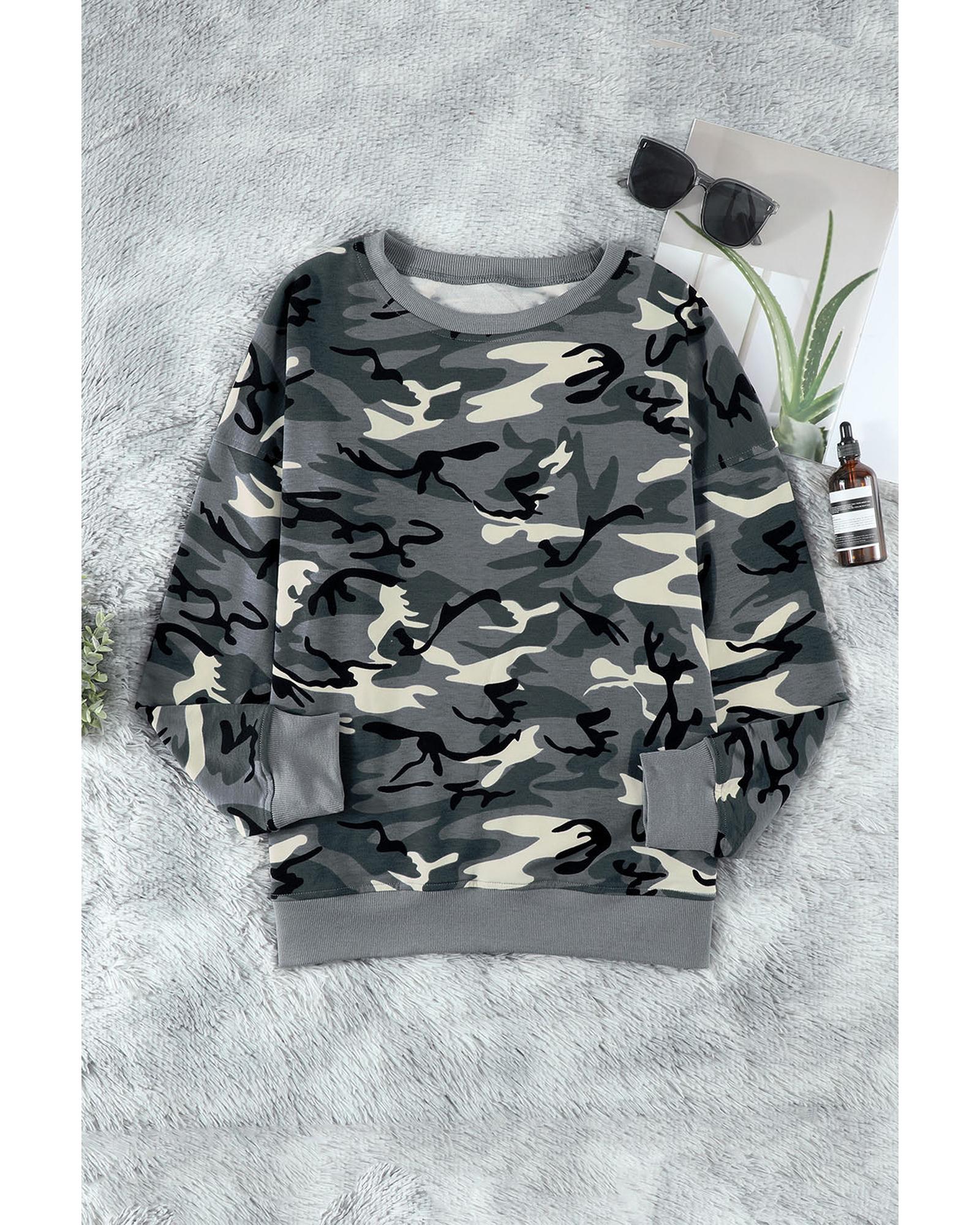 - Stylish and trendy Camouflage Pullover Sweatshirt with Slits