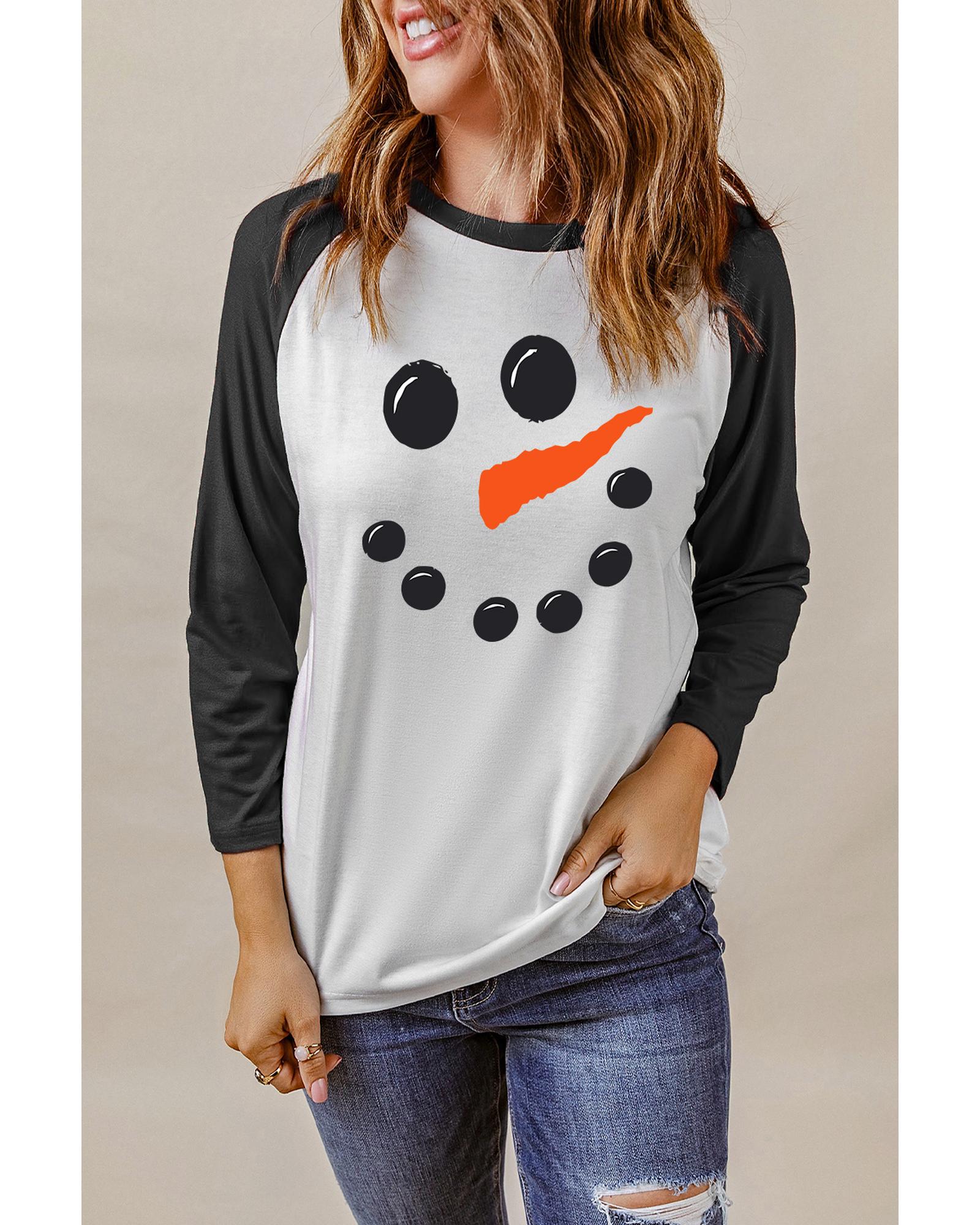 Azura Exchange Christmas Funny Face Print Color Block Top - M
