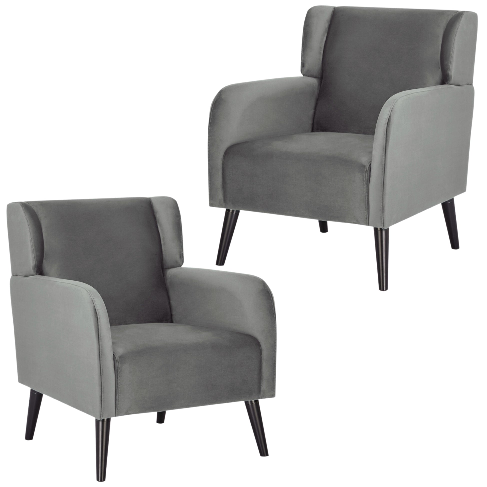Bianca Set of 2 Accent Sofa Arm Chair Fabric Uplholstered Lounge - Mid Grey