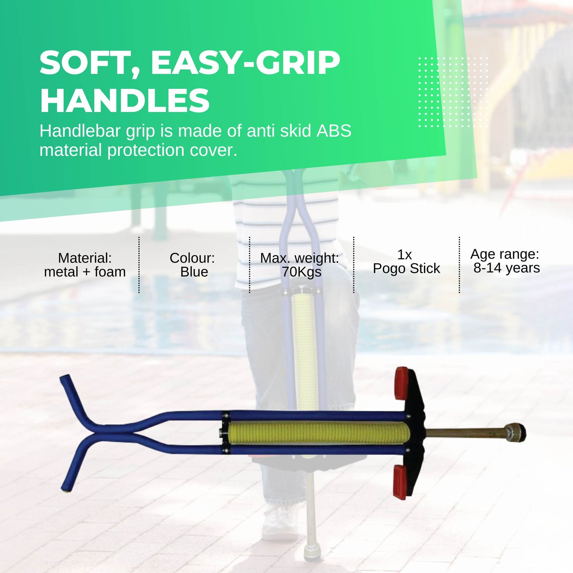 This is a Blue Pogo Stick, allowing you exercise and have fun whilst enjoying being outdoors. These are great play toys for children and teenagers.
