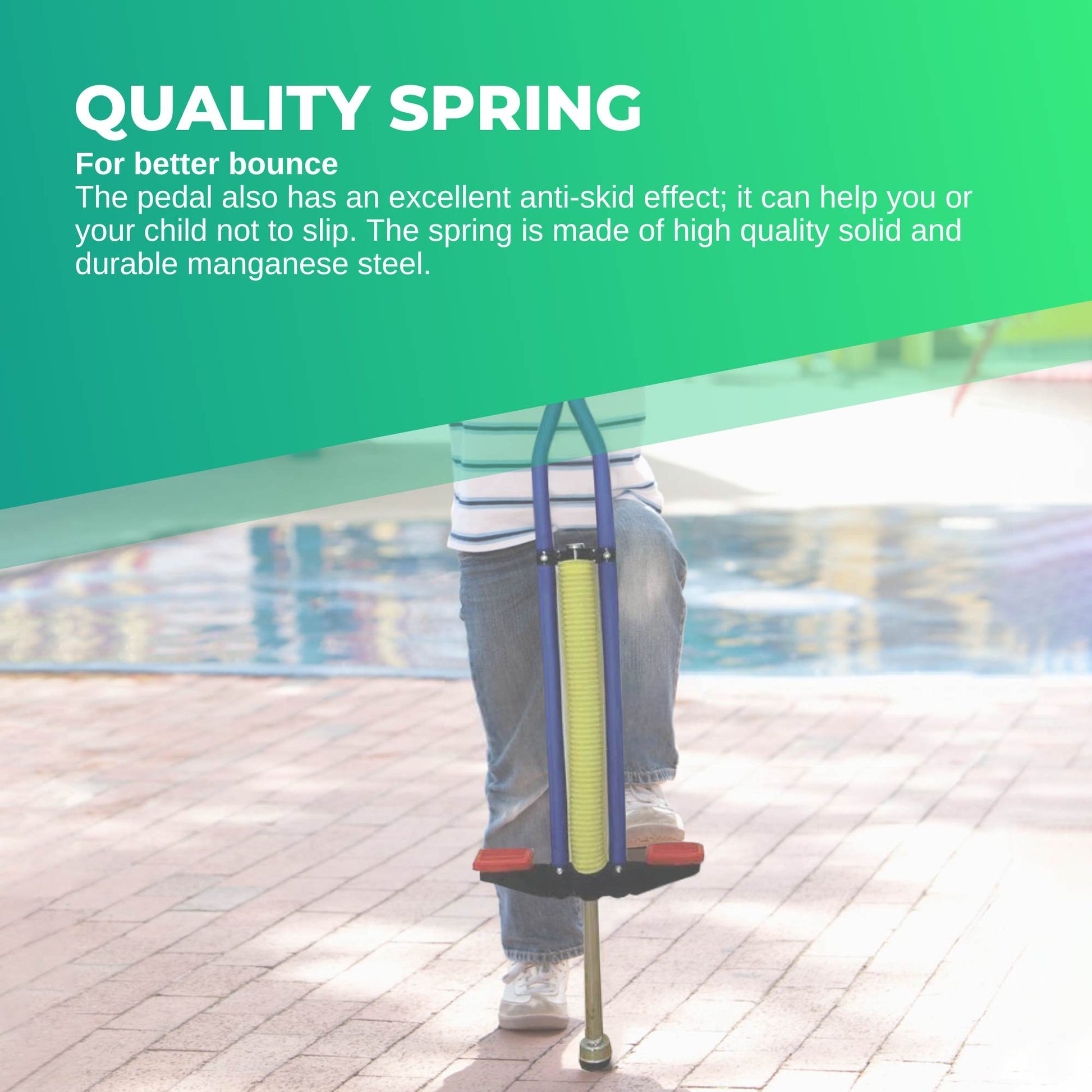The shafts of these jackhammer pogo jumpers are made of solid durable iron alloy. Handlebar grip is made of anti skid ABS material protection cover. The pedal also has an excellent anti-skid effect; it can help you or your child not to slip. The spring is made of high quality solid and durable manganese steel.
