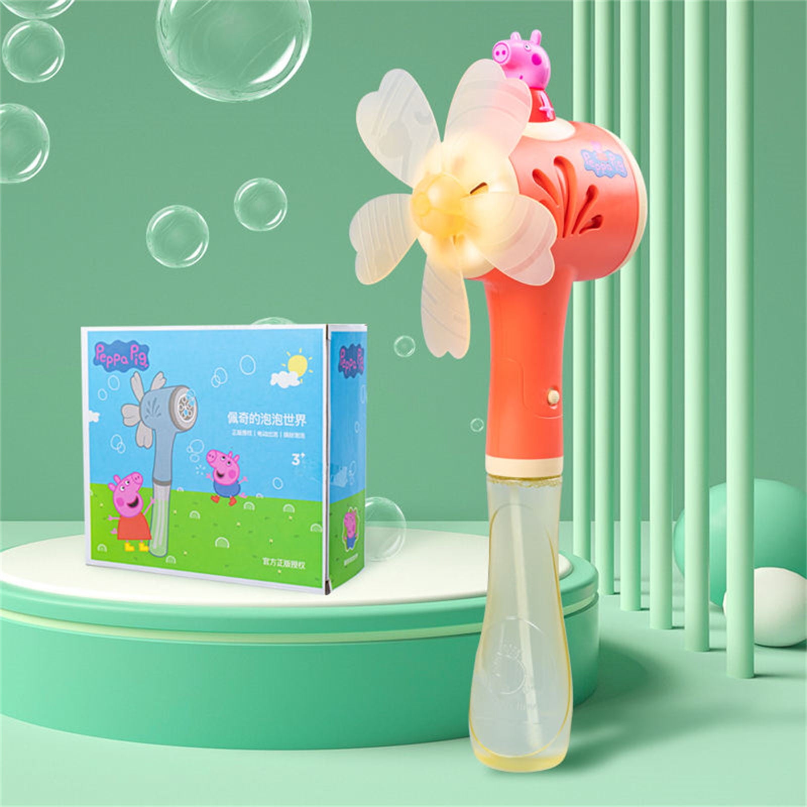 Bubblerainbow Peppa Pig Windmill Bubble Machine Hand-Held Stick Electric Bubble Toy Pink