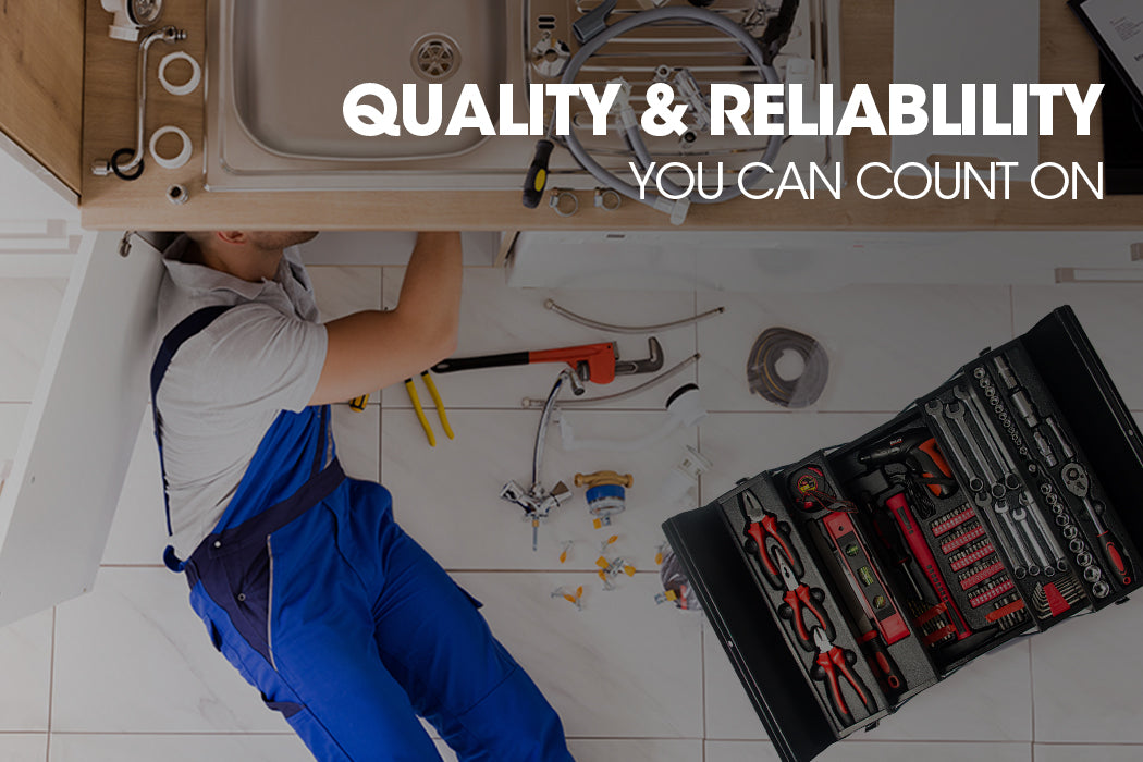 Have every odd-job and task around your home covered with the Bullet 118 Piece Cantilever Tool Box. This comprehensive metric tool kit comes with a huge assortment of practical tools ranging from sockets and pliers to hex keys and a handy cordless screwdriver. Made from high-quality chrome vanadium, these are dependable and enduring tools that perform to an exceptional standard. The box itself is built with a high tensile powder coated steel enclosure to withstand knocks that may occur during the course of work or transport.