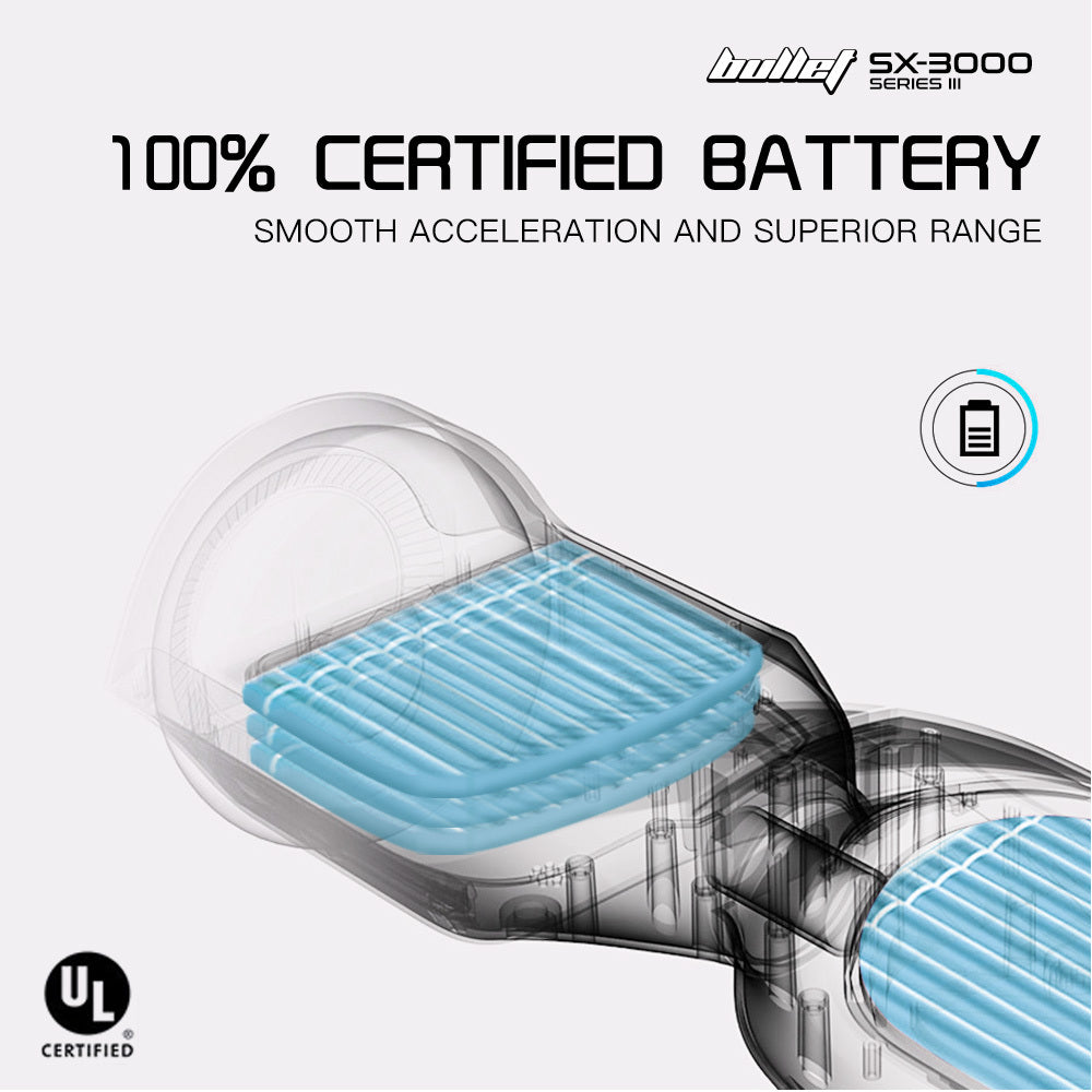 The Bullet SX-3000 Series III Electric Hoverboard Scooter is a state-of-the-art self-balancing device that reacts instinctively to your body's shifting movements for highly responsive acceleration, turning and reversing.