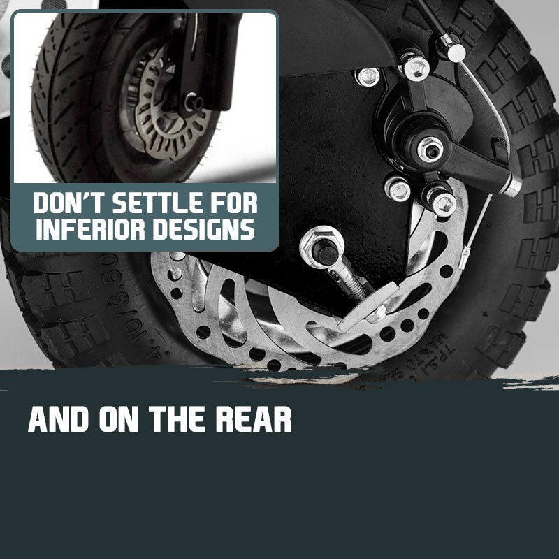 Of course, our boffins paid equal attention to the handling - a high-tensile yet lightweight steel frame houses tough polished steel shocks, massive disc brakes and oversized knobby 10-inch tyres. For those that like to tinker with their toys, youll love how easy it is to tweak the shocks and brakes to your riding style.