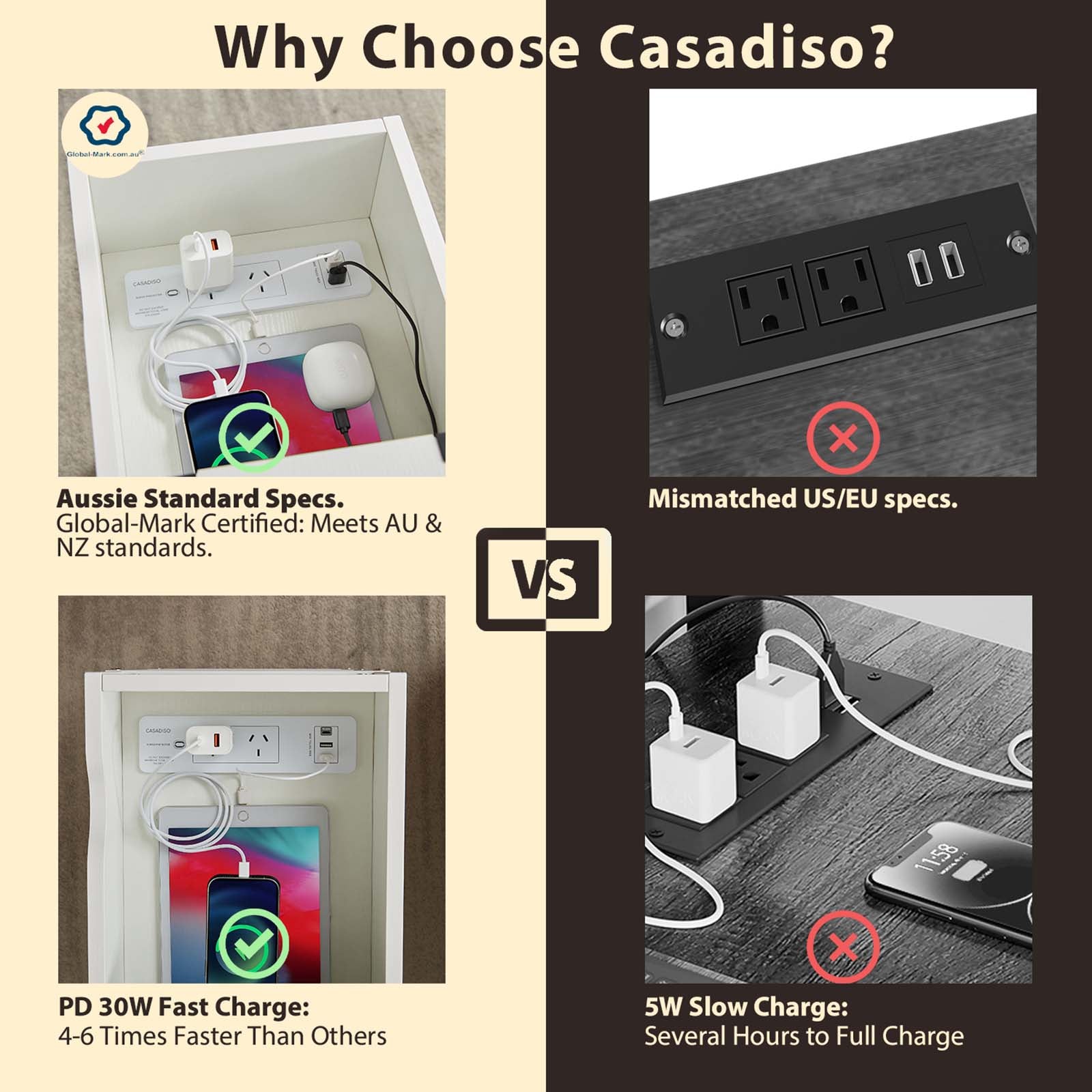 - Certified Electrical Safety: Featuring Australian Global-Mark electrical safety certification, this unique white side table ensures safe power use with PD30W fast charging and USB Type-C, along with lightning and surge protection.