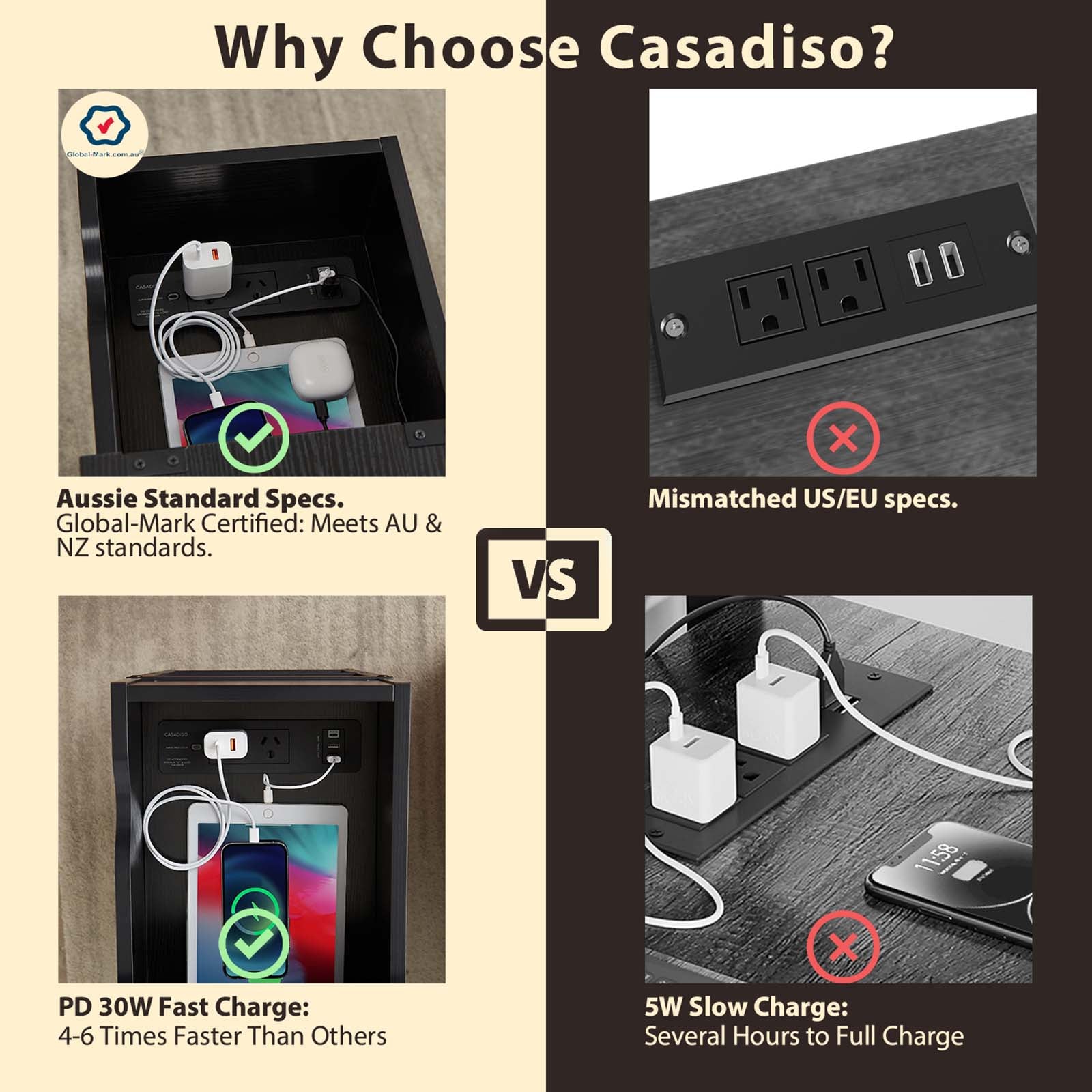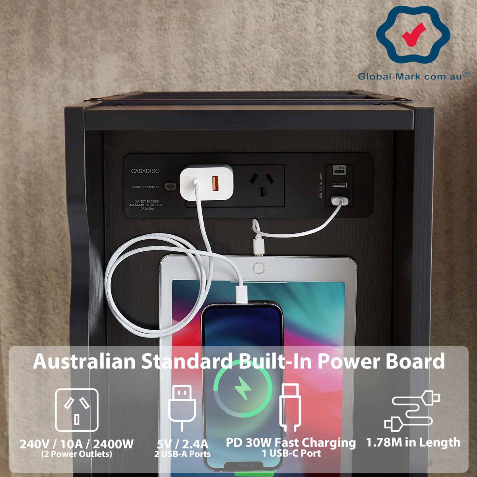 - Australian Certified Safety: This unique table is the only one in the market with Australian Global-Mark electrical safety certification. Enjoy worry-free power usage with features like PD30W fast charging, USB-C, and surge protection.