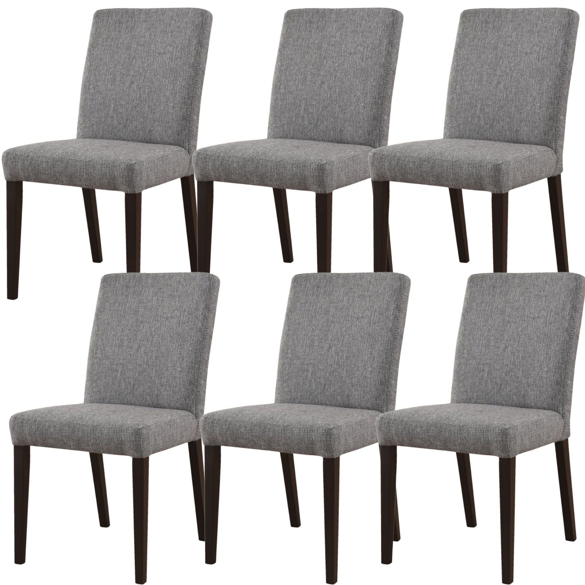 Catmint Dining Chair Set of 6 Fabric Upholstered Solid Acacia Wood - Granite