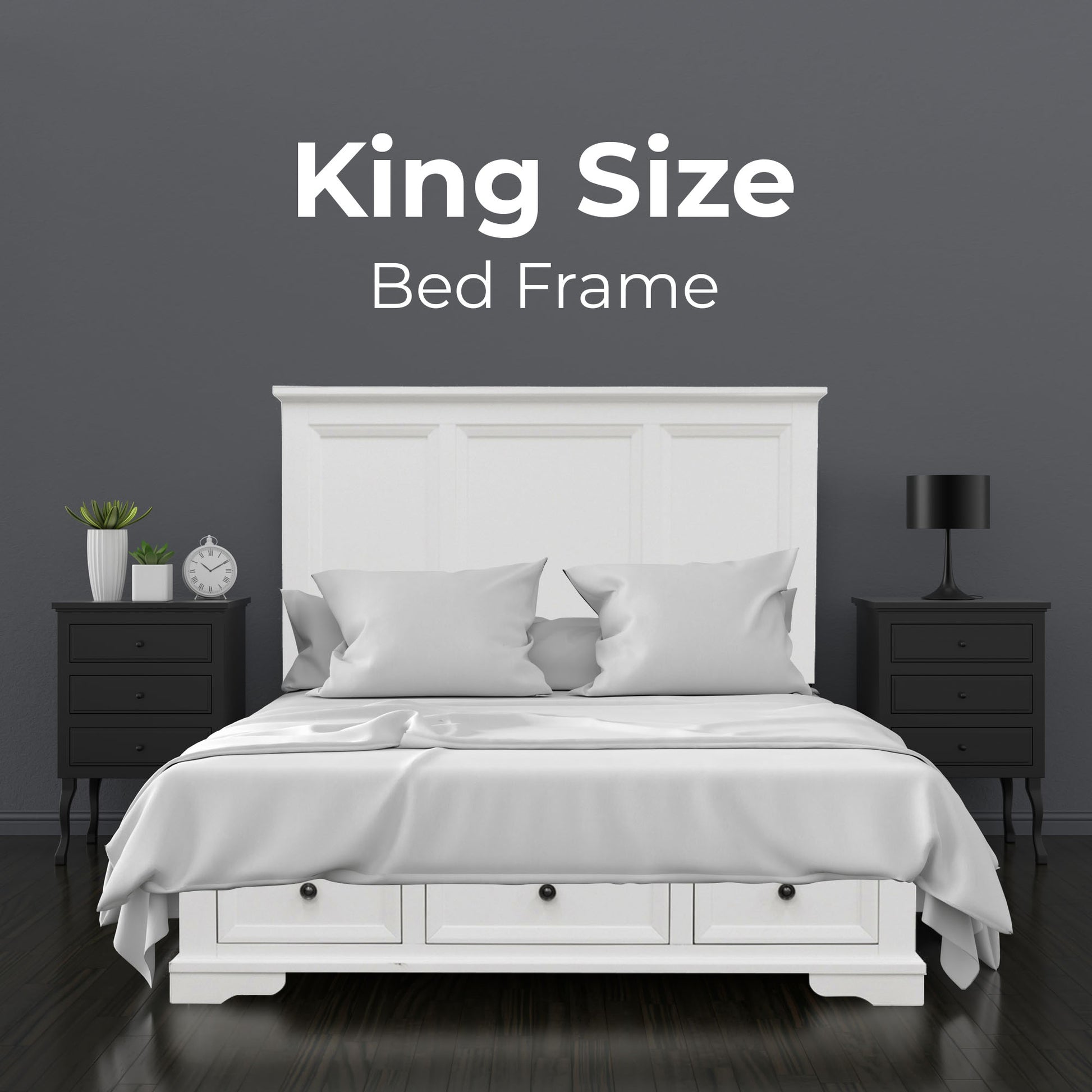 Celosia King Size Bed Frame Timber Mattress Base With Storage Drawers - White