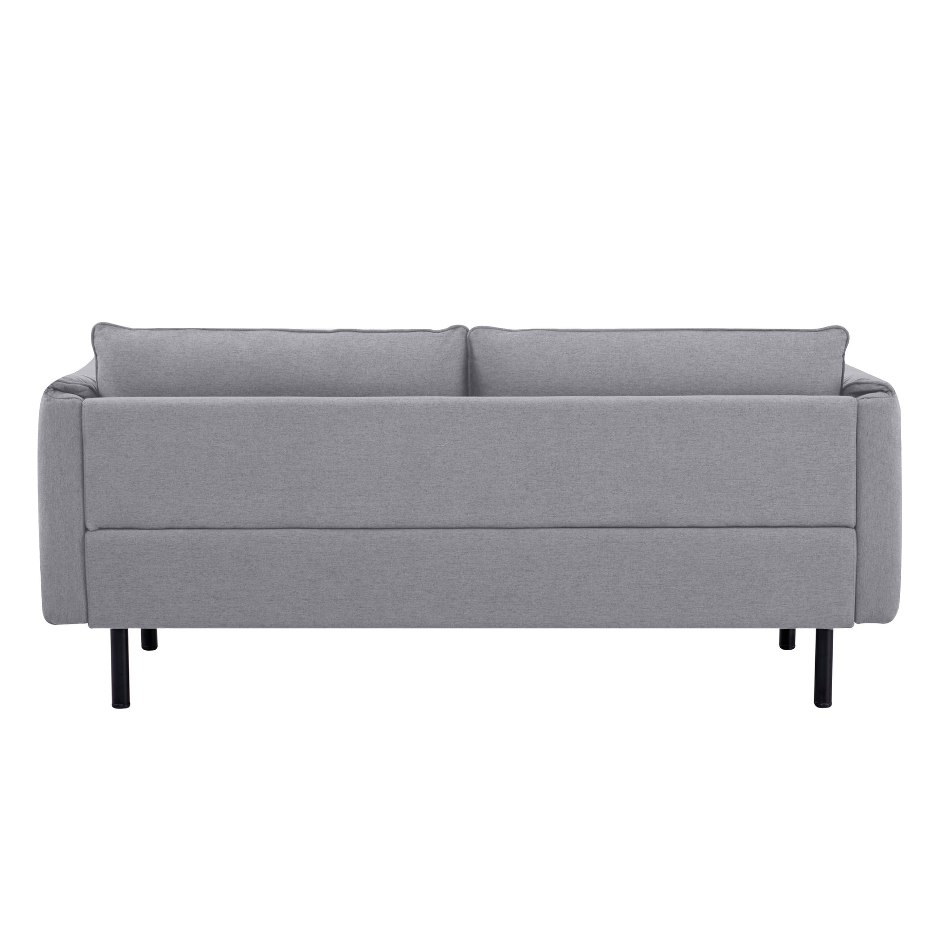 This gorgeous 3-seater sofa in a grey colour assures complete comfort and relaxation. The Scandinavian-style furniture is upholstered in plush upholstery made of high-performance 100% polyester. A fixed cover with piping on it gives the sofa a charming look. The solid pine wood and plywood frame make the sofa light and highly durable. The sturdy frame with seating support made of foam, fabric, and high-tensile S springs ensures blissful comfort when you relax on it. Sturdy metal legs in black give the furniture a strong base. The sofa is easy to assemble. The long-lasting furniture comes with a 1-year warranty.