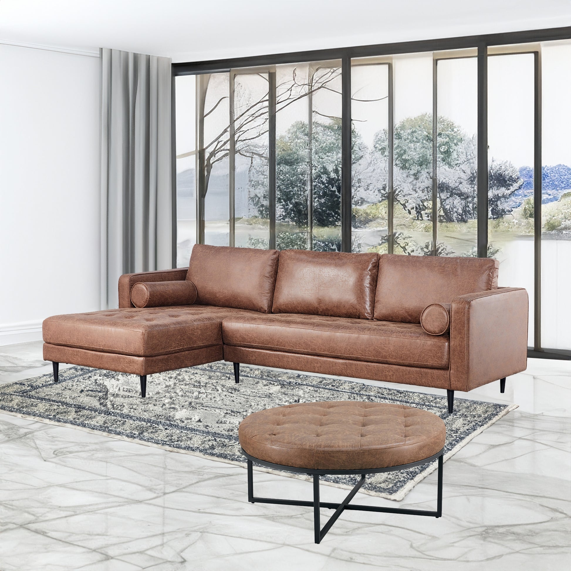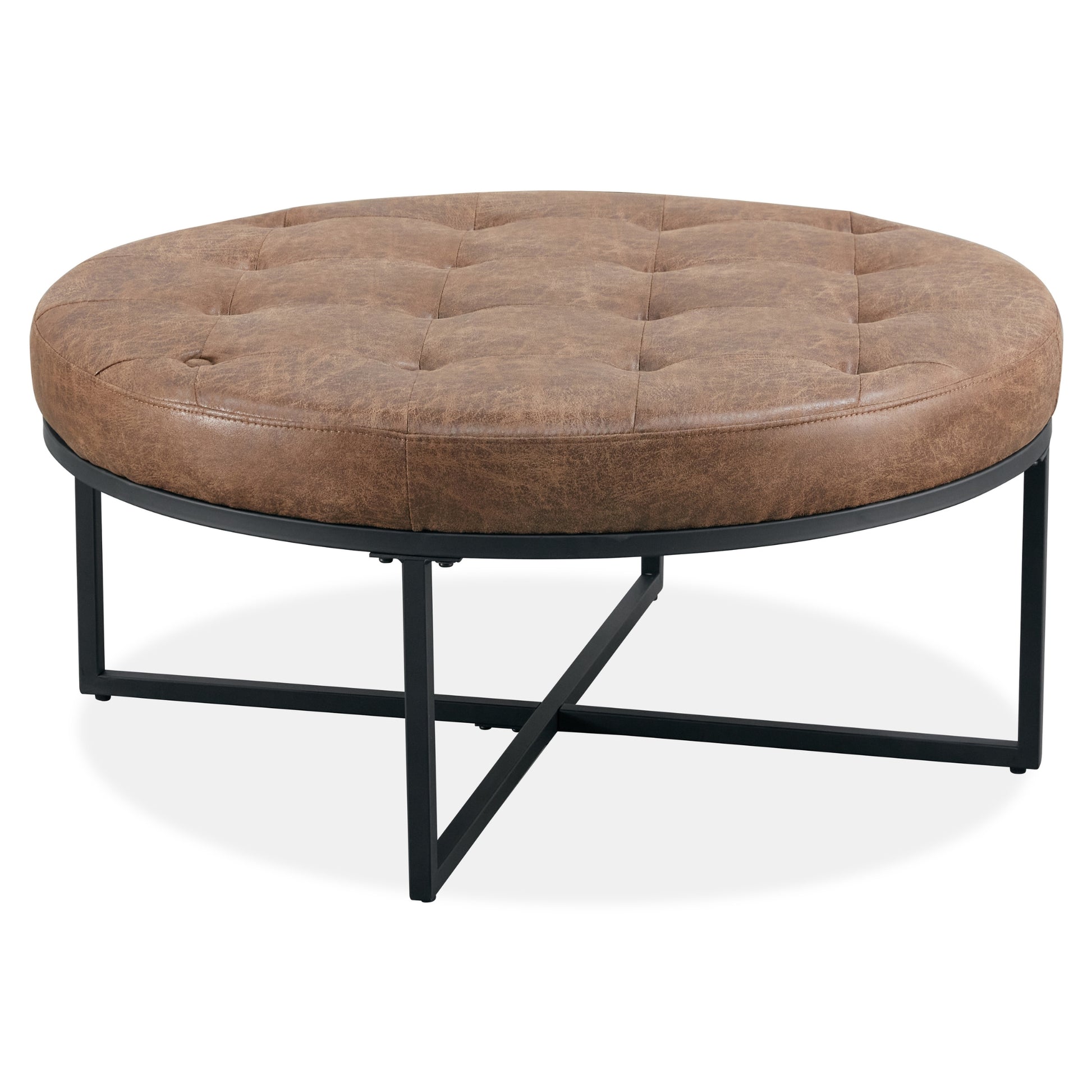 Here’s a slimline-design comfy ottoman in a round shape, crafted in a modern style, that makes your living area shine. The adorable ottoman features tufting details in the seat. The springs, PU foam, polyester fibre, and fabric make the seat comfortable. It is upholstered in highland fabric in a leather look, which is 100% polyester, in a saddle colour. Highland is a polyester blended printed fabric that imitates the look of leather without all the temperamental characteristics of leather. The appearance and tactile feel of the material is similar to traditional suedes, however Highland fabric is more substantial and thicker. It is extremely durable, stain resistant, water repellent, fire re-retardant and breathable. It passes the Martindale rub test by 60,000+. This highly durable fabric suitable for busy high traffic use. The colour blends easily with any home interior theme or living space design. The stunning ottoman also features strong, cross-designed legs made of black powder-coated steel. The structural frame of the furniture is made of Galvanised steel, giving it solid internal strength. The frame can easily withstand weights up to 300kg. Fully assembled ottoman is durable as well and it comes with a one-year warranty.