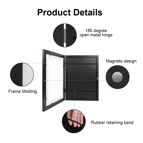 Good Quality Material: Kids art frames interchangeable is made of a strict selection of made of high glossary acrylic and environmentally friendly MDF materials, which are fall resistant, wear-resistant, and durable. Frames open and close easily with a small magnet.