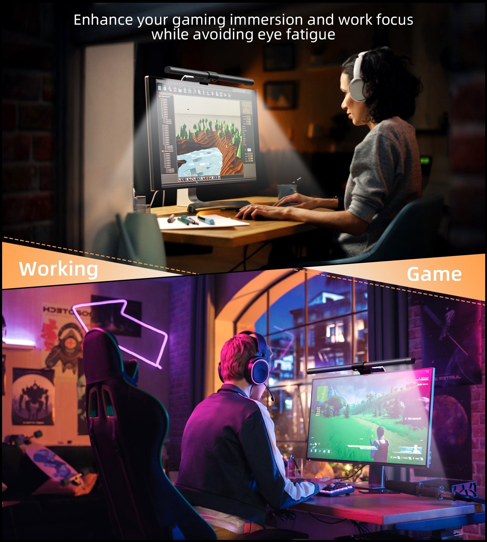 Thanks to the mounting on the monitor, the lamp perfectly illuminates only the working space on the desk. Due to the use of two sets of LEDs with different color temperatures, the emitted light has three colors.