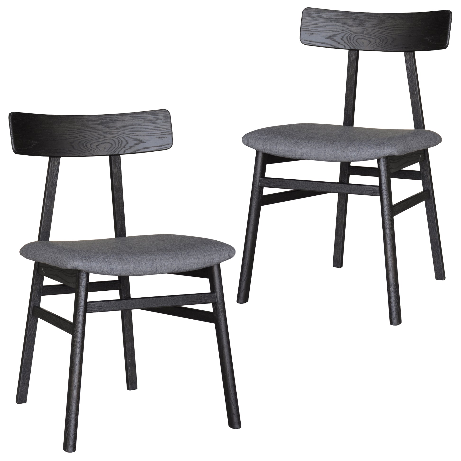 Claire Dining Chair Set of 2 Solid Oak Wood Fabric Seat Furniture - Black