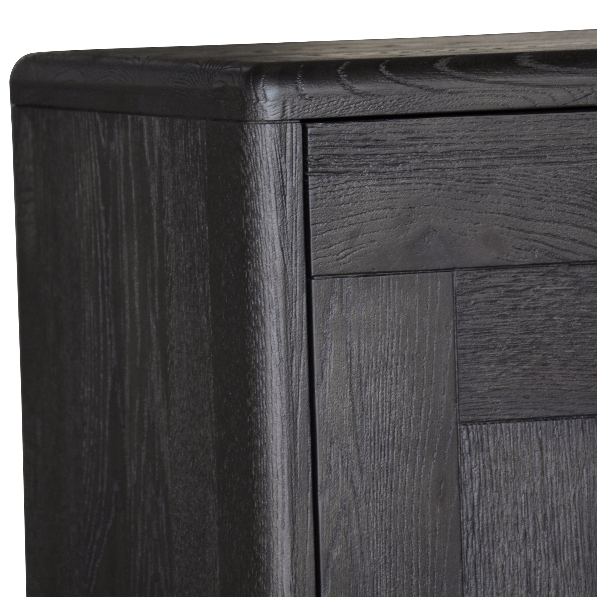 Bring home this lovely 3 door sideboard with spacious compartments and give your living area the beauty it deserves. Designed in the Industrial style, the sideboard in sandblasted black features a geometric parquet pattern on the door fronts that looks gorgeous in a variety of interior decor styles. The sideboard has metal handles in bronze colour, adjustable shelves, and adjustable door hinges to maintain alignment. The structural frame of the furniture is made from solid oak, ply, and oak veneer, all sustainably harvested. The woods make the furniture strong, and durable. A one-year warranty is included with the fully assembled and highly useful sideboard.