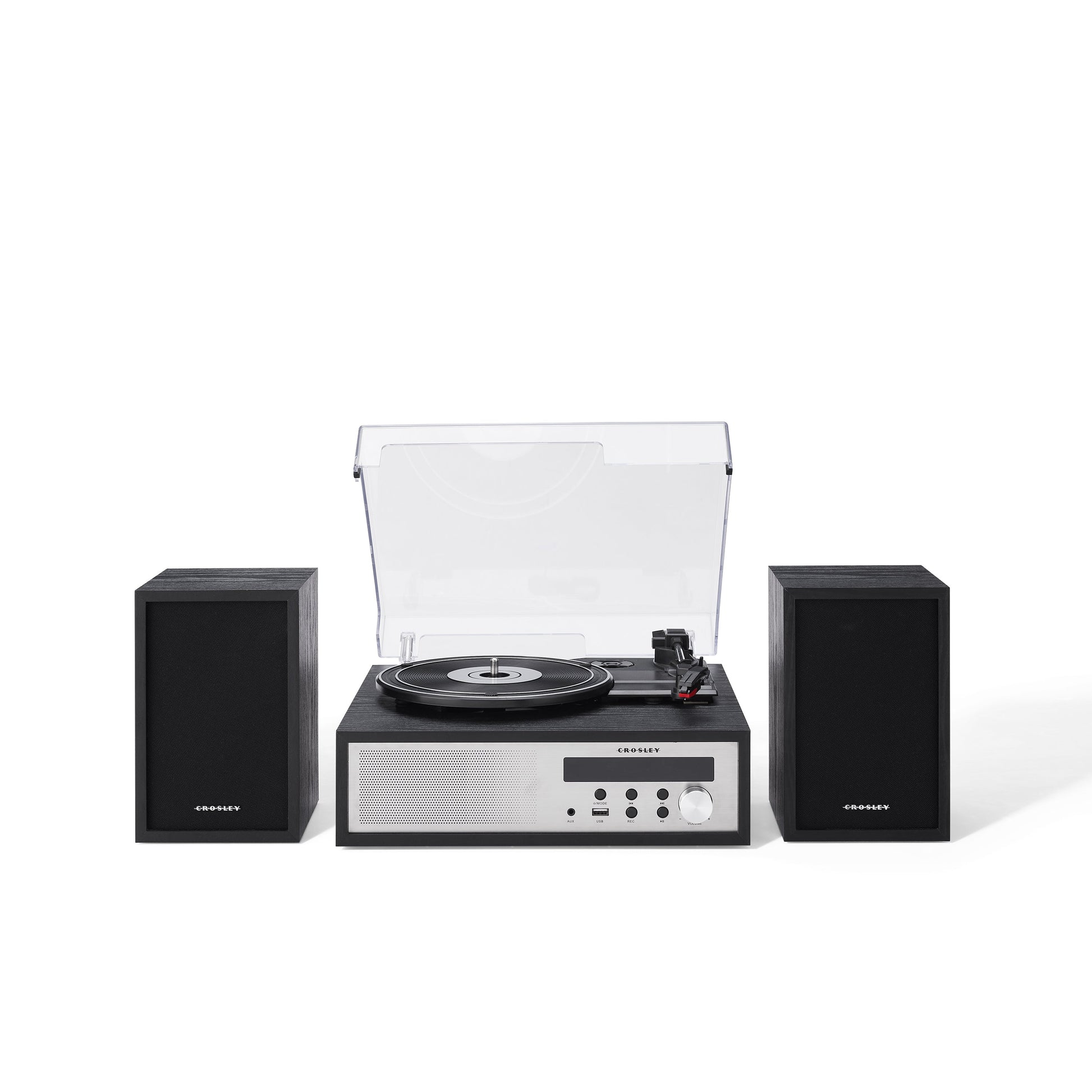Get ready for a stylish and modern turntable setup with the Crosley Sloane Shelf System Turntable. This all-in-one shelf system is the perfect match for your cool tunes, featuring a manual three-speed turntable (33 1/3, 45, & 78 RPM) with a clear dust cover to keep your records in pristine condition.