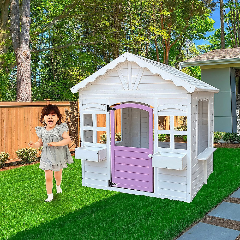 Featuring expansive windows for outstanding natural light filtration, along with easy access through the swinging front door, you'll be able to easily supervise your kids as they have fun and play. The rounded windowsill corners, glass-free construction, non-toxic and eco-friendly paint coating, and weather-resistant roof give you the peace of mind your little ones will be protected at all times.