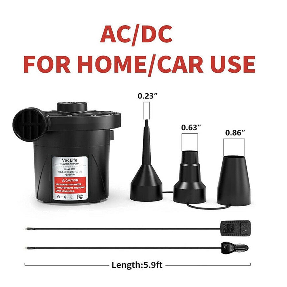 EFFICIENT & RELIABLE - Premium motor greatly reduces its noise in operation. High pressure and -fill design give you more efficient inflating experience. This electric air pump is faster than most air pumps on the market. Save more time for fun