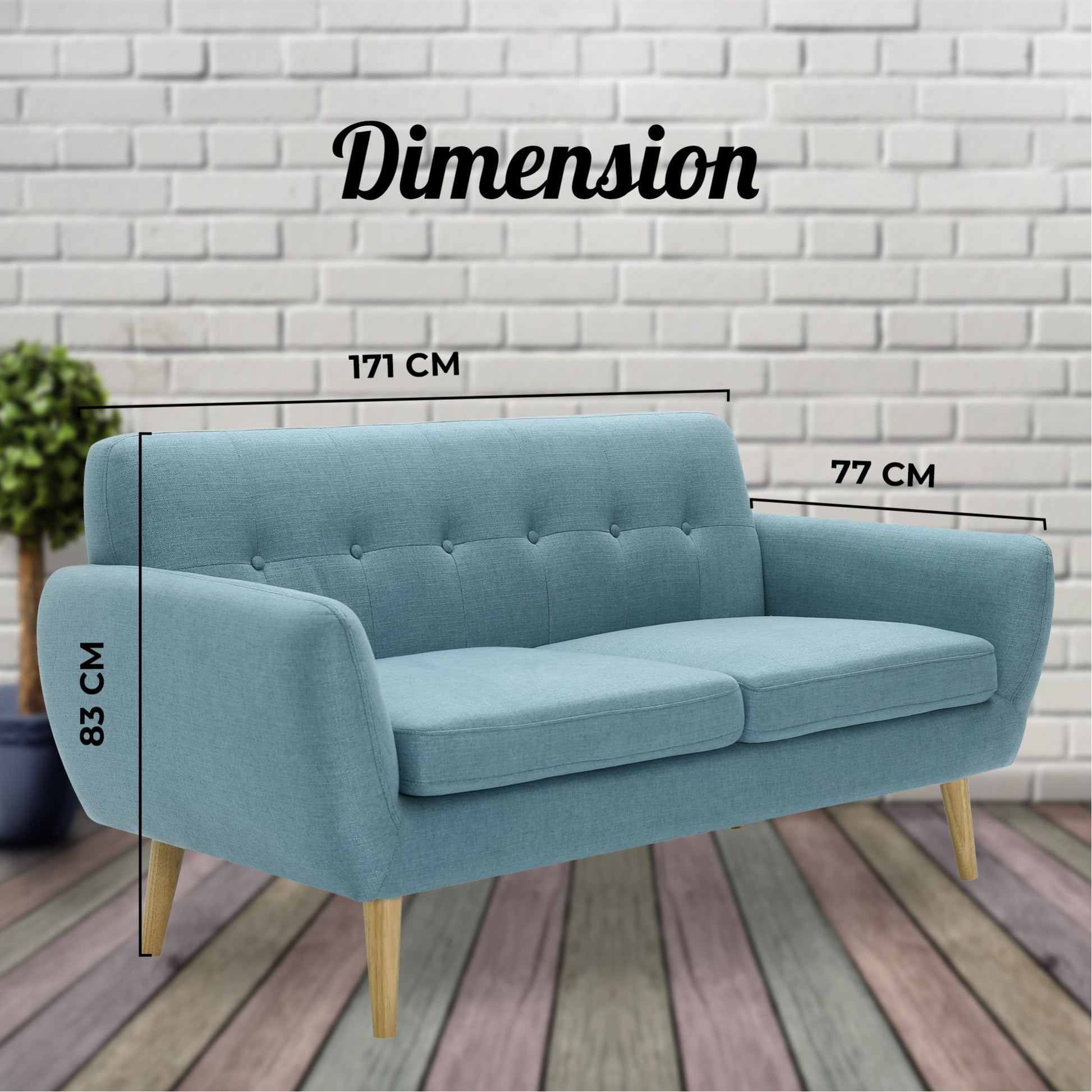 3-Seater Sofa: W171 x D77 x H83 CM