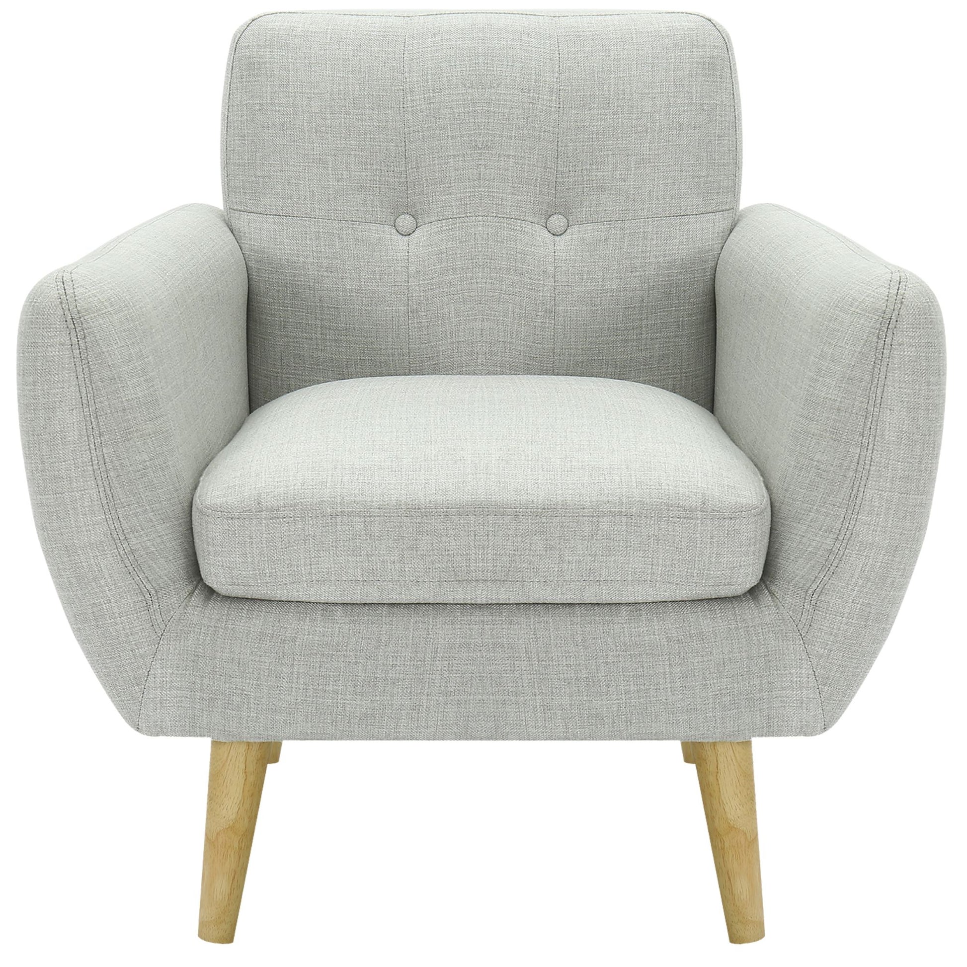 Dane Single Seater Fabric Upholstered Sofa Armchair Lounge Couch - Light Grey